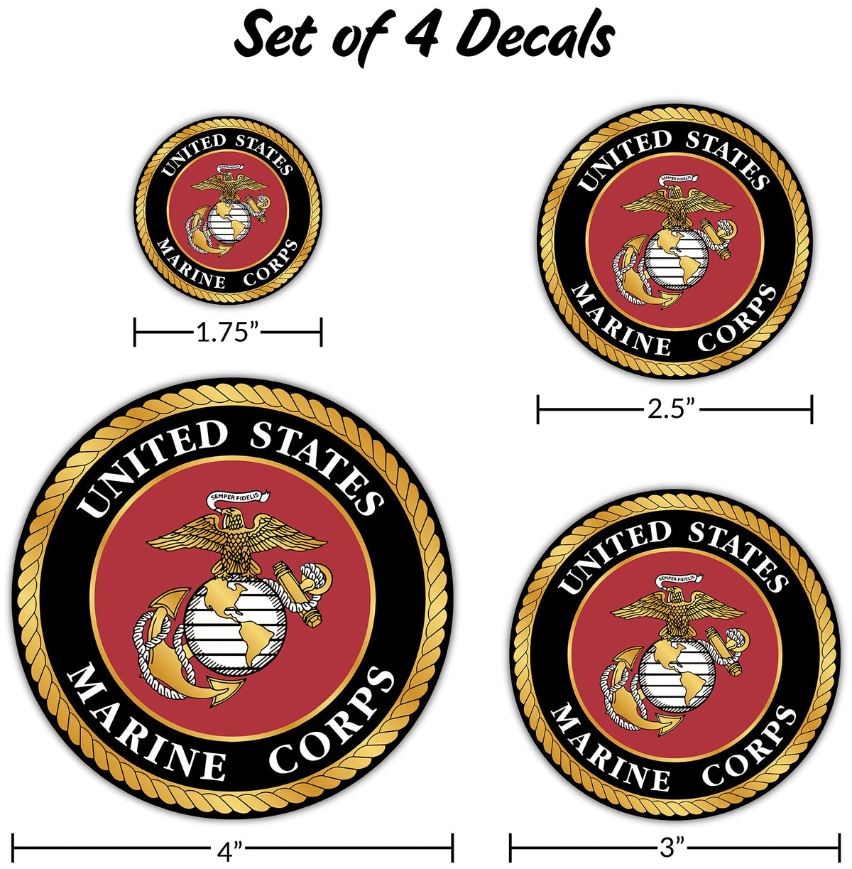 Decalcomania - 4 Piece Us Marine Corps Logo Decals - Usmc Military Stickers For Truck Car Phone Tablet Laptop - 1.75'' To 4'' Ma