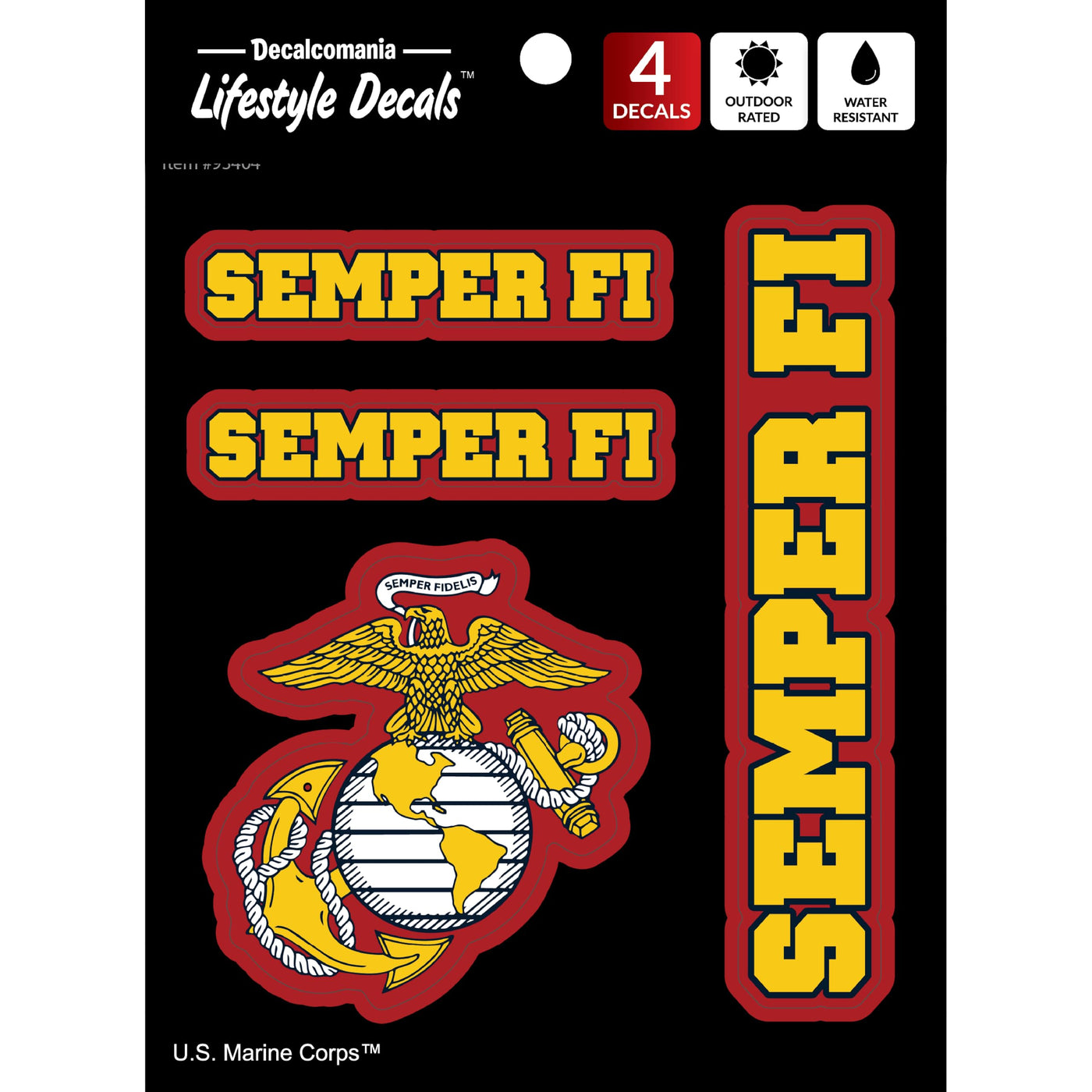 Decalcomania United States Marine Corps - Semper Fi Set Of 4 Usmc Vinyl Decals For Cars And Truck Military Stickers