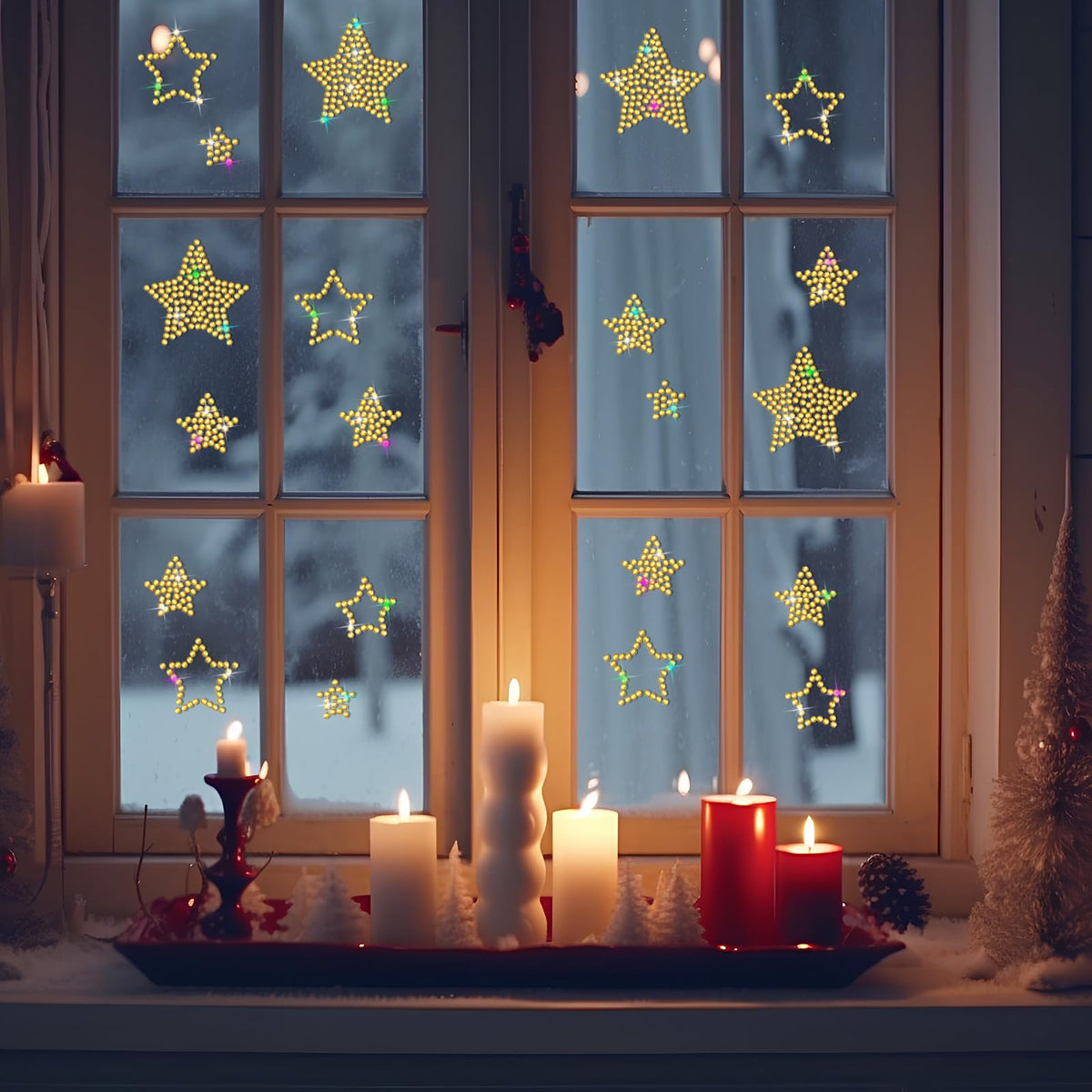 Epakh 84 Pieces Gold Rhinestone Star Stickers, Glitter Bling Self Adhesive Crystal Star Sticker For Winter Package Gift Decor Ho