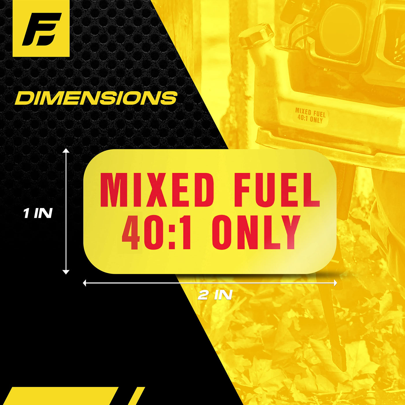 Mixed Fuel 40:1 Sticker, Gas Oil Mix Labels For Outdoor Fuel Power Equipment - Weather Proof, Extreme Stick, Commercial Grade La