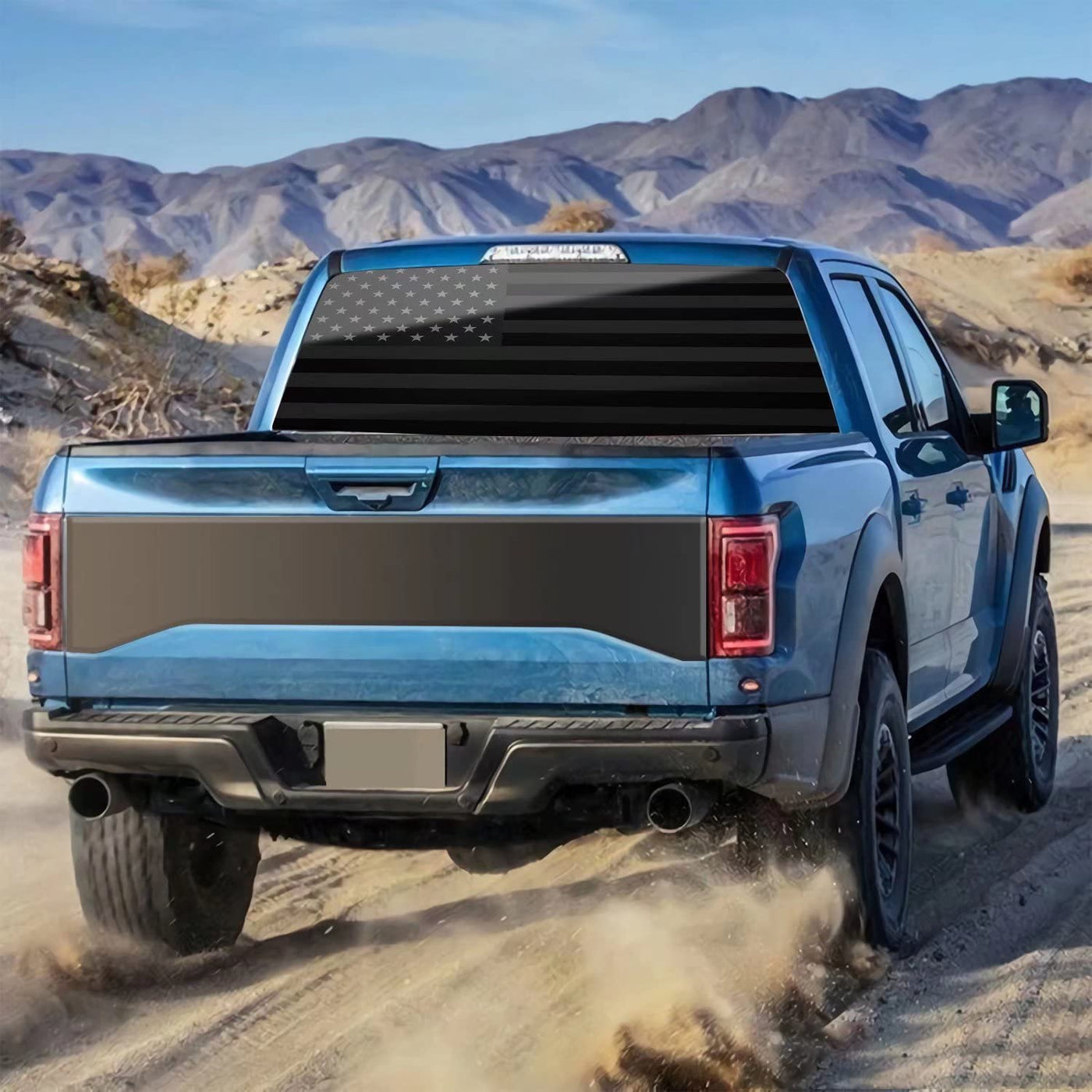 Mlgb Vinyl Rear Window Decal, Deep Black American Flag Pickup Truck Sticker, 66'' X 20''