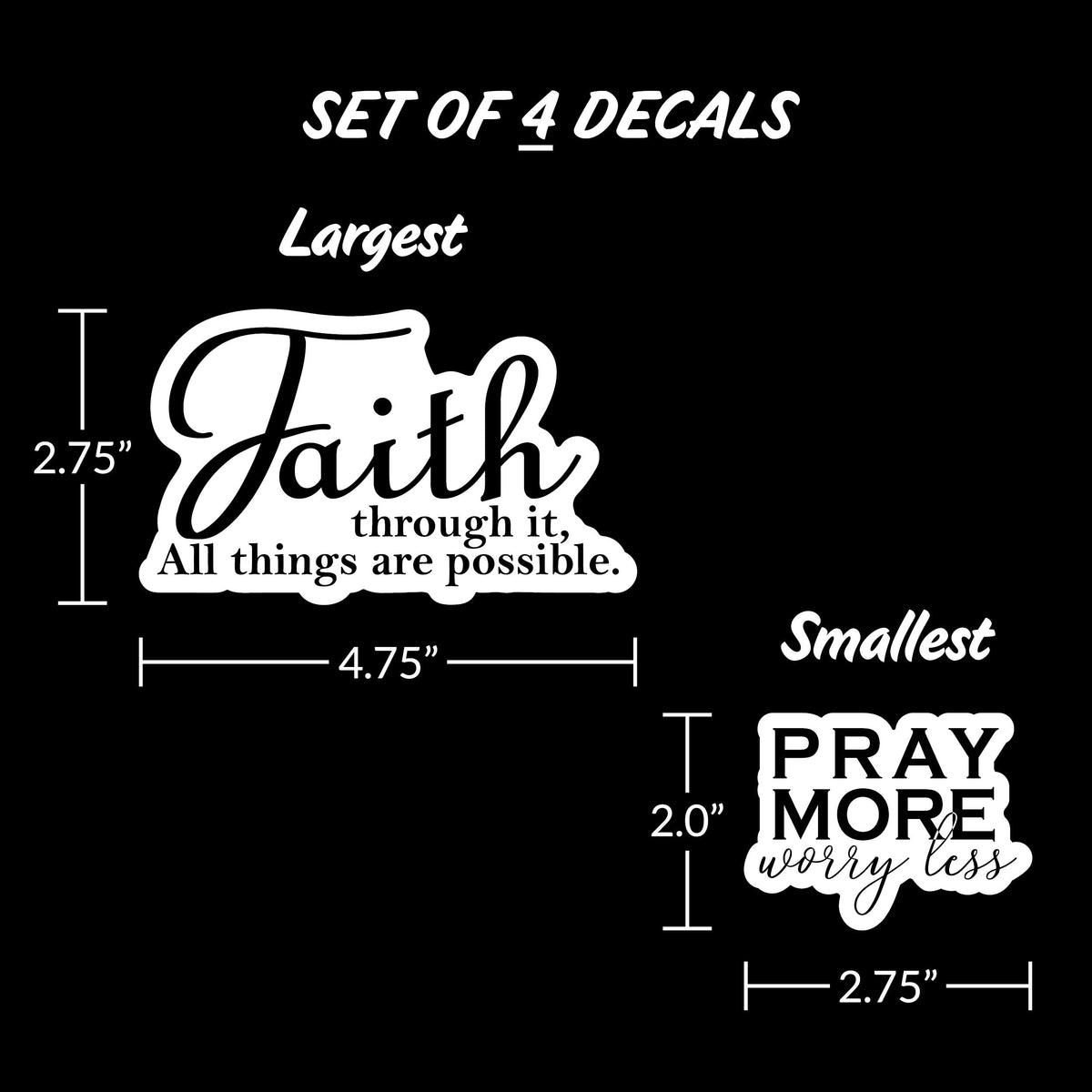 Religious Faith Vinyl Stickers - 4 Piece Decals Car Window Decals - Vinyl Car Sign Sticker - All Weather Proof - Pray More - Fai