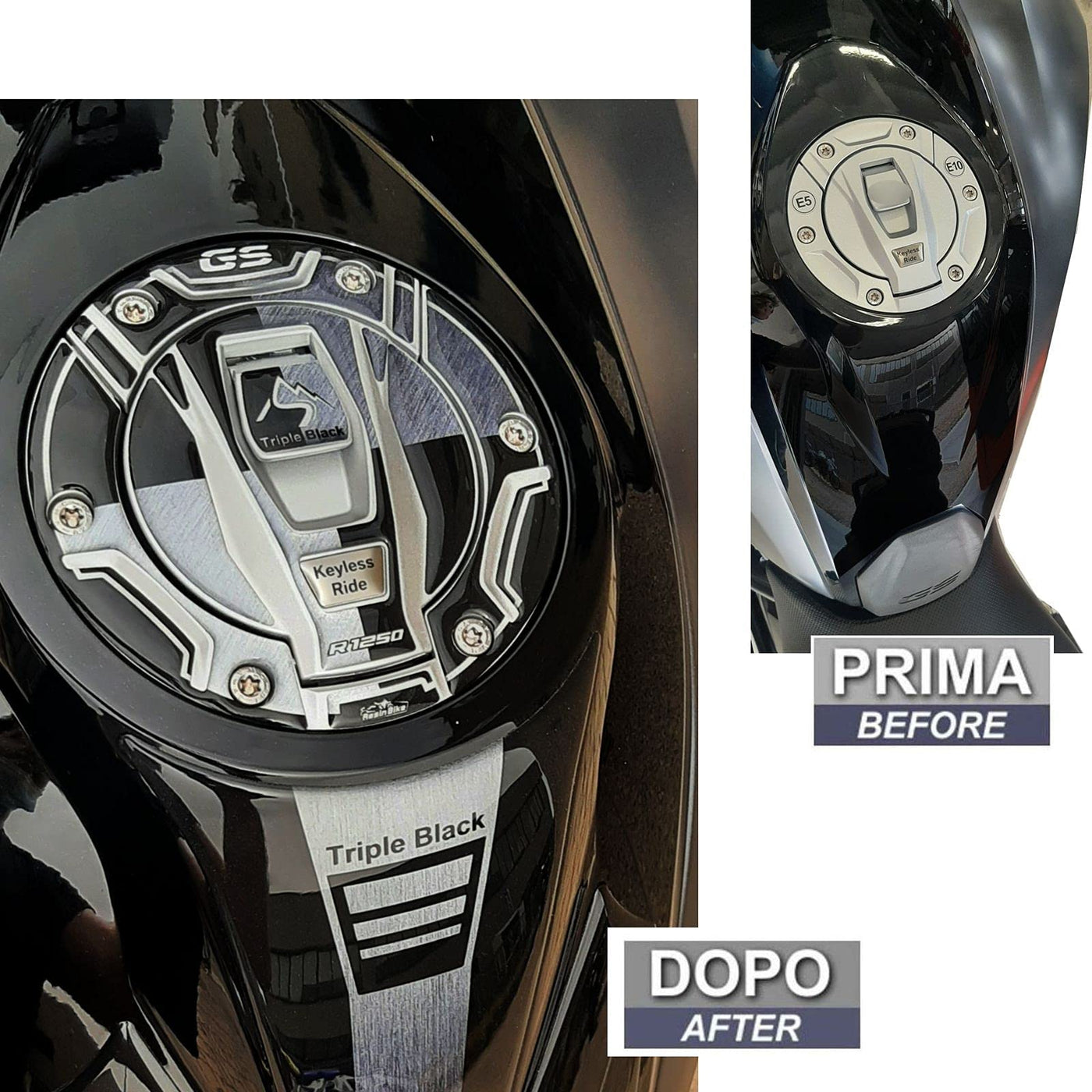 Resin Bike Motorcycle 3D Stickers Compatible With Bmw R 1250 Gs Triple Black 2021-2022. Tank Cap Protection From Bumps And Scratches. Resin Stickers - Made In Italy