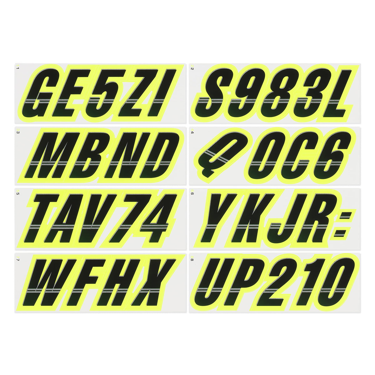 The Stiffie Techtron Alpha Numeric Identification Kit Has Filled The Void For A Racing Inspired Boat Registration Decal. This Styles Two-Color Design Features A Forward-Facing Slant With An Exterior Color Fade-In That Graduates From The Bottom Upward. Its Circle Track, Auto Racing Inspired Form Is The Basis Of The Individual Characters Which Are Set Off By An Interior Half Toned Highlight, Providing A 3-Dimensional Look. In Addition, The Stiffie Techtron Design Contains Two Interior Accent Stripes That Look Like They Were Carved Into The Face Of The Interior Character. This Registration Numbers Design Is Topped Off With A Heavy, Wide Body Exterior Outline Makes Overlapping The Individual Characters Very Easy And Enables You To Create A Unified, Custom Look Like Never Before. Who Said Your Marine Registration Stickers Must Be Boring? If You Are Looking For An Aggressive Style This Is The Boat Sticker Kit For You. The Stiffie Techtron Speed-Inspired Style Is Available In 112 Standard Colors And 23 Super-Sticky Colors For Use With Lse (Low Surface Energy) Plastic Surfaces Such As The Sea-Doo Spark, Inflatable Boats, Ribs And Hypalon/Pvc. Stiffie Boat Numbers Are 100% Manufactured In The Usa Using Our Color Clone Printing System. Stiffie Is The Only Registration Decal Manufacturer Offering True Color Matching For Your Oem Boat, Marine Vessel Or Personal Watercraft. Stiffie Alphanumeric Id Kits Are Marine Registration Stickers For All Water Vessels, Boats, Personal Watercraft. Our Decals Can Also Be Used For Dot Identifier Number Placement (Department Of Transportation), Snowmobile Registration, Or Any Application That Requires The Permanent Identification Or Marking Of Name Or Number. Our Decals Are Offered In Styles And Color Ways That Match Your Vessels Original Equipment Manufacturer (Oem) Color And Design Scheme. All Alphanumeric Id Kits Offered By Stiffie Come With Characters That Are 3 '' In Height And Meet Or Exceed Us Coast Guard Regulations. Every Id Kit Comes With 4 Sets Of 0-9 And A-Z Decals (146 Total Decals). Stiffie Alphanumeric Registration Decals Are Made To Withstand Contact With Chemicals, Fading, Curling, Tearing And Scratching. Stiffie Decals Are Also Uv Coated For Protection From Harmful Ultra-Violet (Uv) Rays. Application Is Easy; Just Peel Away The Decals From Their Backing And Apply. If You Are Not Sure Which Color Or Design Will Best Match Your Vessel, Please Give Us A Call.