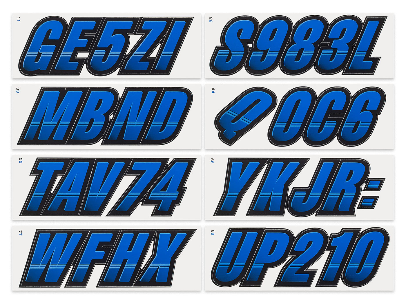 The Stiffie Techtron Alpha Numeric Identification Kit Has Filled The Void For A Racing Inspired Boat Registration Decal. This Styles Two-Color Design Features A Forward-Facing Slant With An Exterior Color Fade-In That Graduates From The Bottom Upward. Its Circle Track, Auto Racing Inspired Form Is The Basis Of The Individual Characters Which Are Set Off By An Interior Half Toned Highlight, Providing A 3-Dimensional Look. In Addition, The Stiffie Techtron Design Contains Two Interior Accent Stripes That Look Like They Were Carved Into The Face Of The Interior Character. This Registration Numbers Design Is Topped Off With A Heavy, Wide Body Exterior Outline Makes Overlapping The Individual Characters Very Easy And Enables You To Create A Unified, Custom Look Like Never Before. Who Said Your Marine Registration Stickers Must Be Boring? If You Are Looking For An Aggressive Style This Is The Boat Sticker Kit For You. The Stiffie Techtron Speed-Inspired Style Is Available In 112 Standard Colors And 23 Super-Sticky Colors For Use With Lse (Low Surface Energy) Plastic Surfaces Such As The Sea-Doo Spark, Inflatable Boats, Ribs And Hypalon/Pvc. Stiffie Boat Numbers Are 100% Manufactured In The Usa Using Our Color Clone Printing System. Stiffie Is The Only Registration Decal Manufacturer Offering True Color Matching For Your Oem Boat, Marine Vessel Or Personal Watercraft. Stiffie Alphanumeric Id Kits Are Marine Registration Stickers For All Water Vessels, Boats, Personal Watercraft. Our Decals Can Also Be Used For Dot Identifier Number Placement (Department Of Transportation), Snowmobile Registration, Or Any Application That Requires The Permanent Identification Or Marking Of Name Or Number. Our Decals Are Offered In Styles And Color Ways That Match Your Vessels Original Equipment Manufacturer (Oem) Color And Design Scheme. All Alphanumeric Id Kits Offered By Stiffie Come With Characters That Are 3 '' In Height And Meet Or Exceed Us Coast Guard Regulations. Every Id Kit Comes With 4 Sets Of 0-9 And A-Z Decals (146 Total Decals). Stiffie Alphanumeric Registration Decals Are Made To Withstand Contact With Chemicals, Fading, Curling, Tearing And Scratching. Stiffie Decals Are Also Uv Coated For Protection From Harmful Ultra-Violet (Uv) Rays. Application Is Easy; Just Peel Away The Decals From Their Backing And Apply. If You Are Not Sure Which Color Or Design Will Best Match Your Vessel, Please Give Us A Call.