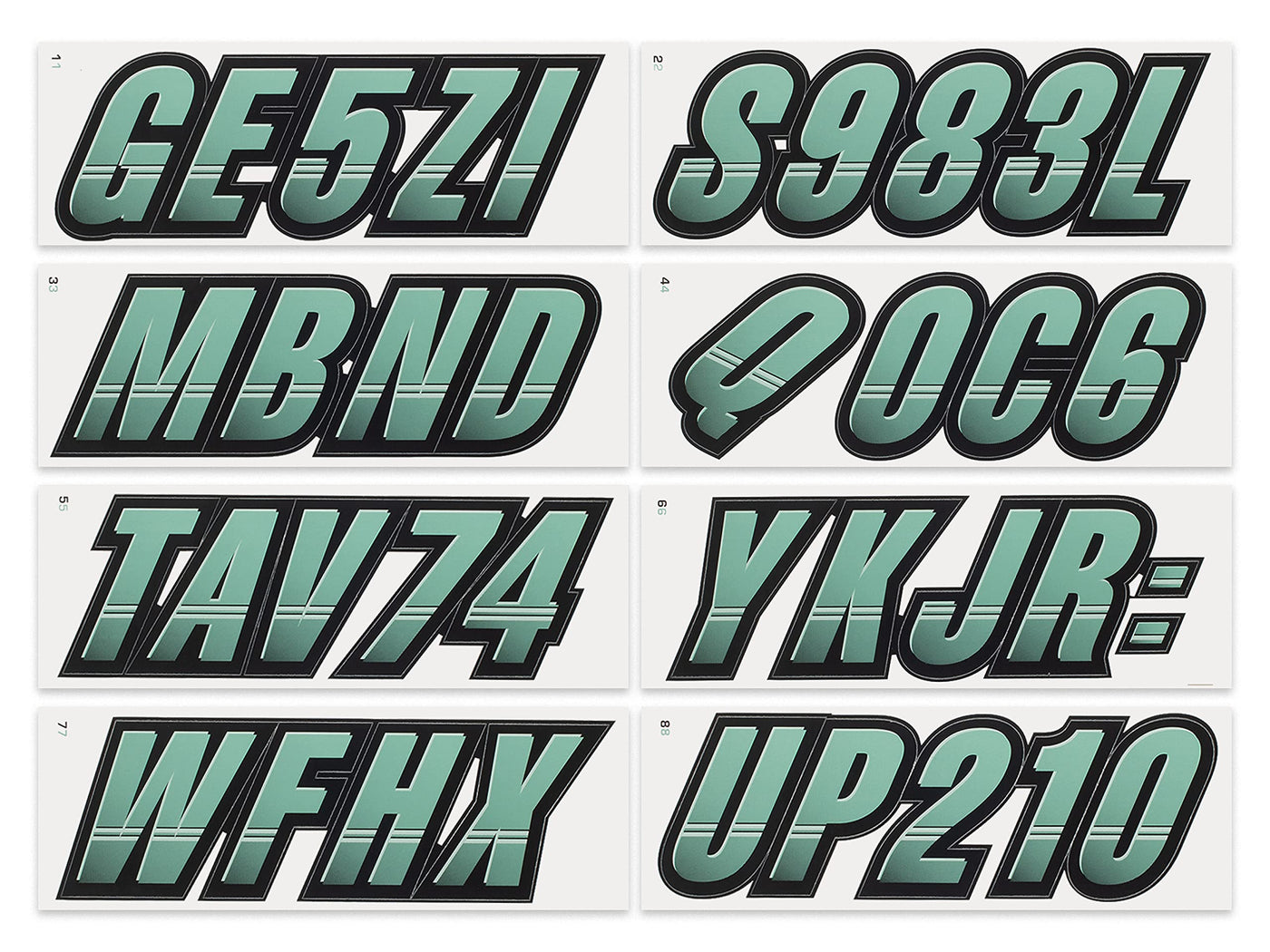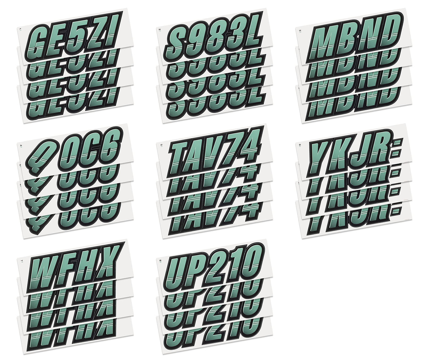 The Stiffie Techtron Alpha Numeric Identification Kit Has Filled The Void For A Racing Inspired Boat Registration Decal. This Styles Two-Color Design Features A Forward-Facing Slant With An Exterior Color Fade-In That Graduates From The Bottom Upward. Its Circle Track, Auto Racing Inspired Form Is The Basis Of The Individual Characters Which Are Set Off By An Interior Half Toned Highlight, Providing A 3-Dimensional Look. In Addition, The Stiffie Techtron Design Contains Two Interior Accent Stripes That Look Like They Were Carved Into The Face Of The Interior Character. This Registration Numbers Design Is Topped Off With A Heavy, Wide Body Exterior Outline Makes Overlapping The Individual Characters Very Easy And Enables You To Create A Unified, Custom Look Like Never Before. Who Said Your Marine Registration Stickers Must Be Boring? If You Are Looking For An Aggressive Style This Is The Boat Sticker Kit For You. The Stiffie Techtron Speed-Inspired Style Is Available In 112 Standard Colors And 23 Super-Sticky Colors For Use With Lse (Low Surface Energy) Plastic Surfaces Such As The Sea-Doo Spark, Inflatable Boats, Ribs And Hypalon/Pvc. Stiffie Boat Numbers Are 100% Manufactured In The Usa Using Our Color Clone Printing System. Stiffie Is The Only Registration Decal Manufacturer Offering True Color Matching For Your Oem Boat, Marine Vessel Or Personal Watercraft. Stiffie Alphanumeric Id Kits Are Marine Registration Stickers For All Water Vessels, Boats, Personal Watercraft. Our Decals Can Also Be Used For Dot Identifier Number Placement (Department Of Transportation), Snowmobile Registration, Or Any Application That Requires The Permanent Identification Or Marking Of Name Or Number. Our Decals Are Offered In Styles And Color Ways That Match Your Vessels Original Equipment Manufacturer (Oem) Color And Design Scheme. All Alphanumeric Id Kits Offered By Stiffie Come With Characters That Are 3 '' In Height And Meet Or Exceed Us Coast Guard Regulations. Every Id Kit Comes With 4 Sets Of 0-9 And A-Z Decals (146 Total Decals). Stiffie Alphanumeric Registration Decals Are Made To Withstand Contact With Chemicals, Fading, Curling, Tearing And Scratching. Stiffie Decals Are Also Uv Coated For Protection From Harmful Ultra-Violet (Uv) Rays. Application Is Easy; Just Peel Away The Decals From Their Backing And Apply. If You Are Not Sure Which Color Or Design Will Best Match Your Vessel, Please Give Us A Call.