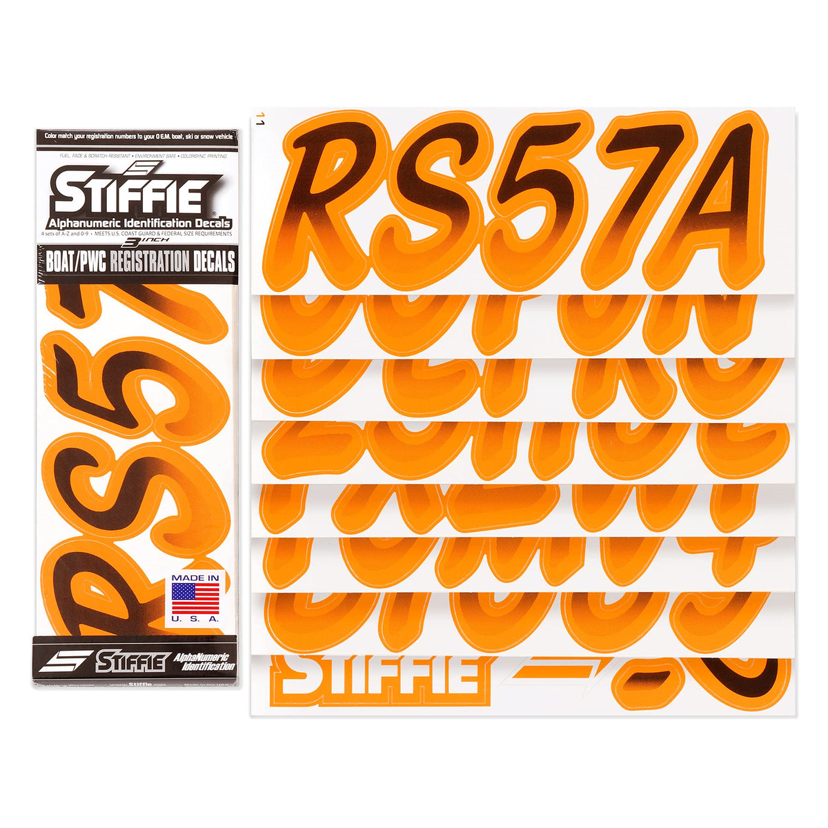 The Stiffie Whipline Alpha Numeric Identification Kit Remains Our Premiere Boat Registration Numbers And Letters Decals Style Since 1992. It Is A Two-Color Design That Features A Forward-Facing Slant With Smooth, Rounded Edges And A Bold Drop Shadow Type Outline In A Contrasting Color. If Style And Cool Factor Is As Important To You As Functionality Then This Style Is Probably For You. The Stiffie Whipline Curvaceous Style Is Available In 120 Standard Colors And 21 Super-Sticky Colors For Use With Lse (Low Surface Energy) Plastic Surfaces Such As The Sea-Doo Spark, Inflatable Boats, Ribs And Hypalon/Pvc. Stiffie Boat Numbers Are 100% Manufactured In The Usa Using Our Color Clone Printing System. Stiffie Is The Only Registration Decal Manufacturer Offering True Color Matching For Your Oem Boat, Marine Vessel Or Personal Watercraft. Stiffie Alphanumeric Id Kits Are Marine Registration Stickers For All Water Vessels, Boats, Personal Watercraft. Our Decals Can Also Be Used For Dot Identifier Number Placement (Department Of Transportation), Snowmobile Registration, Or Any Application That Requires The Permanent Identification Or Marking Of Name Or Number. Our Decals Are Offered In Styles And Color Ways That Match Your Vessels Original Equipment Manufacturer (Oem) Color And Design Scheme. All Alphanumeric Id Kits Offered By Stiffie Come With Characters That Are 3 '' In Height And Meet Or Exceed Us Coast Guard Regulations. Every Id Kit Comes With 4 Sets Of 0-9 And A-Z Decals (146 Total Decals). Stiffie Alphanumeric Registration Decals Are Made To Withstand Contact With Chemicals, Fading, Curling, Tearing And Scratching. Stiffie Decals Are Also Uv Coated For Protection From Harmful Ultra-Violet (Uv) Rays. Application Is Easy; Just Peel Away The Decals From Their Backing And Apply. If You Are Not Sure Which Color Or Design Will Best Match Your Vessel, Please Give Us A Call.