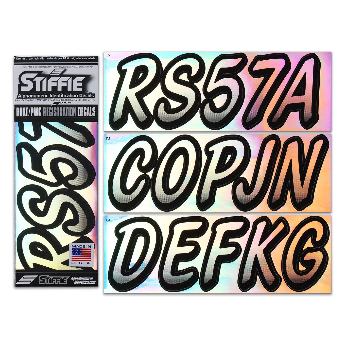 Stiffie Whipline Chrome/Black 3 Alpha-Numeric Registration Identification Numbers Stickers Decals For Boats & Personal Watercraft