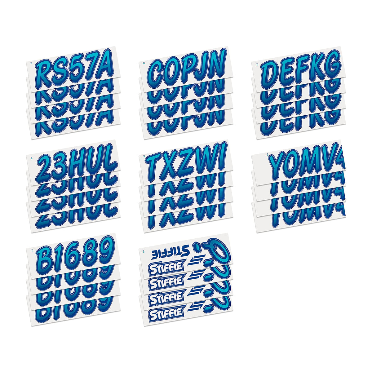 The Stiffie Whipline Alpha Numeric Identification Kit Remains Our Premiere Boat Registration Numbers And Letters Decals Style Since 1992. It Is A Two-Color Design That Features A Forward-Facing Slant With Smooth, Rounded Edges And A Bold Drop Shadow Type Outline In A Contrasting Color. If Style And Cool Factor Is As Important To You As Functionality Then This Style Is Probably For You. The Stiffie Whipline Curvaceous Style Is Available In 120 Standard Colors And 21 Super-Sticky Colors For Use With Lse (Low Surface Energy) Plastic Surfaces Such As The Sea-Doo Spark, Inflatable Boats, Ribs And Hypalon/Pvc. Stiffie Boat Numbers Are 100% Manufactured In The Usa Using Our Color Clone Printing System. Stiffie Is The Only Registration Decal Manufacturer Offering True Color Matching For Your Oem Boat, Marine Vessel Or Personal Watercraft. Stiffie Alphanumeric Id Kits Are Marine Registration Stickers For All Water Vessels, Boats, Personal Watercraft. Our Decals Can Also Be Used For Dot Identifier Number Placement (Department Of Transportation), Snowmobile Registration, Or Any Application That Requires The Permanent Identification Or Marking Of Name Or Number. Our Decals Are Offered In Styles And Color Ways That Match Your Vessels Original Equipment Manufacturer (Oem) Color And Design Scheme. All Alphanumeric Id Kits Offered By Stiffie Come With Characters That Are 3 '' In Height And Meet Or Exceed Us Coast Guard Regulations. Every Id Kit Comes With 4 Sets Of 0-9 And A-Z Decals (146 Total Decals). Stiffie Alphanumeric Registration Decals Are Made To Withstand Contact With Chemicals, Fading, Curling, Tearing And Scratching. Stiffie Decals Are Also Uv Coated For Protection From Harmful Ultra-Violet (Uv) Rays. Application Is Easy; Just Peel Away The Decals From Their Backing And Apply. If You Are Not Sure Which Color Or Design Will Best Match Your Vessel, Please Give Us A Call.
