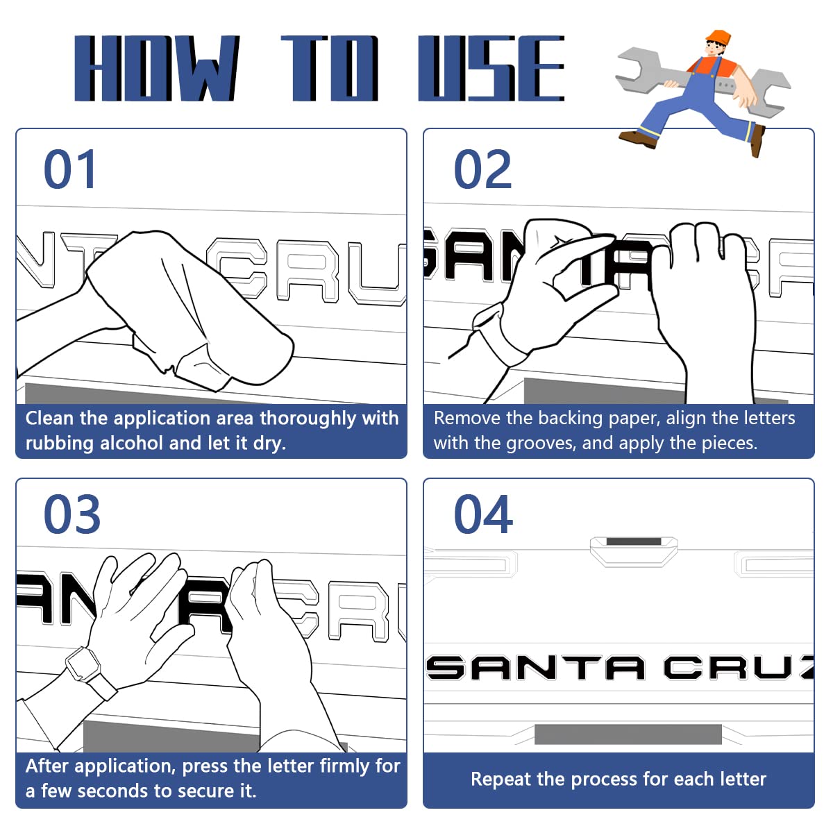 Tailgate Inserts Letters Compatible For 2022 2023 2024 2025 Santa Cruz 3D Raised & Strong Adhesive Decals Letters Rear Emblem De