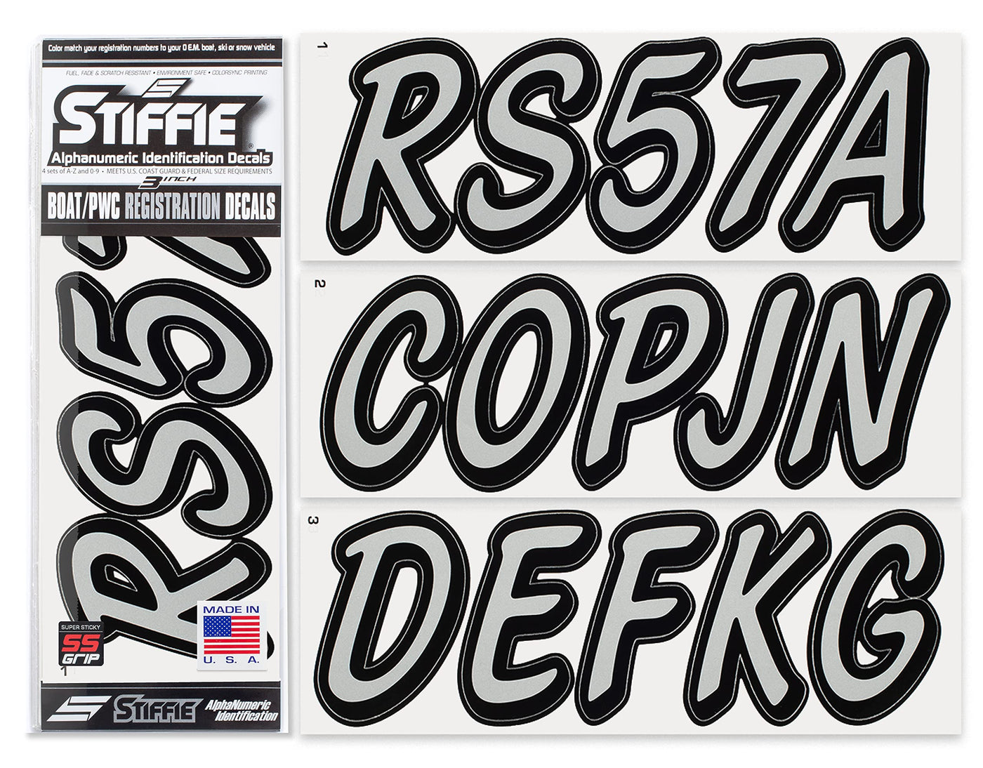 Whipline Solid Silver/Black 3 Alpha-Numeric Registration Identification Numbers Stickers Decals For Boats & Personal Watercraft