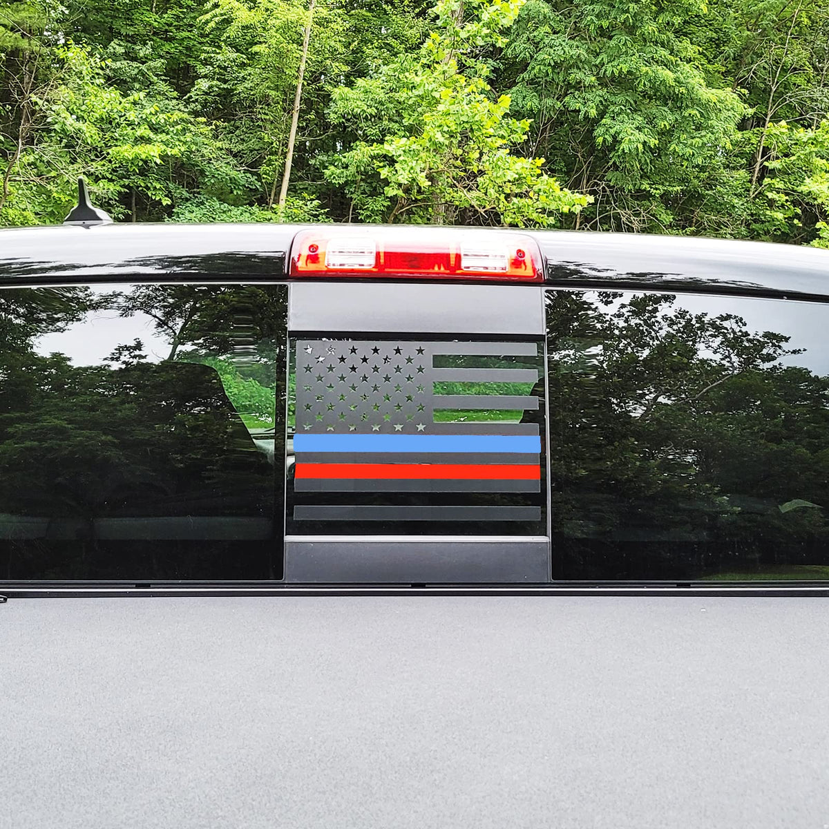 Xinghe For Chevy Silverado Gmc Sierra Chevrolet Colorado, Rear Middle Window American Flag Decals Stickers (Matte Black Redblue