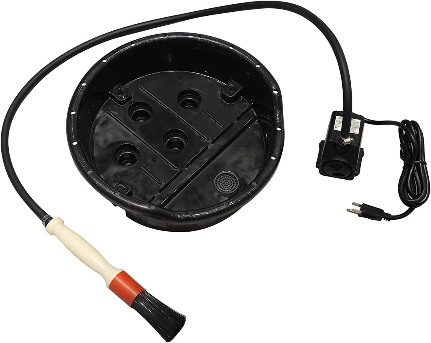 Q: What features make the cleaning process effective with this parts washer?A: The BIG RED AXH-PPW5GUR includes a high-frequency, waterproof, submersible pump and a flow-through hard bristle brush, which efficiently removes caked-on dirt and debris.