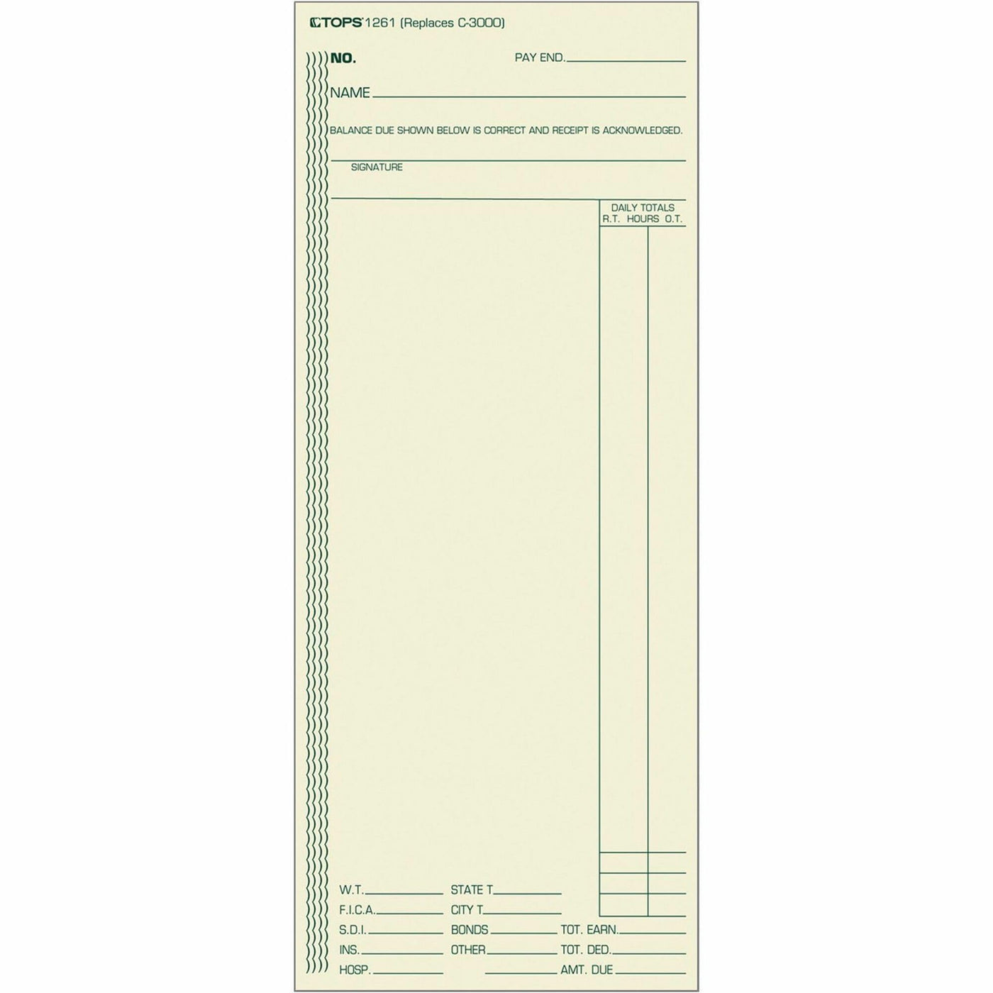 Tops Time Cards (Replaces Original Card C3000), Weekly Time Card Form, 1-Sided, 8 1/4'' X 3 3/8'', Box Of 500