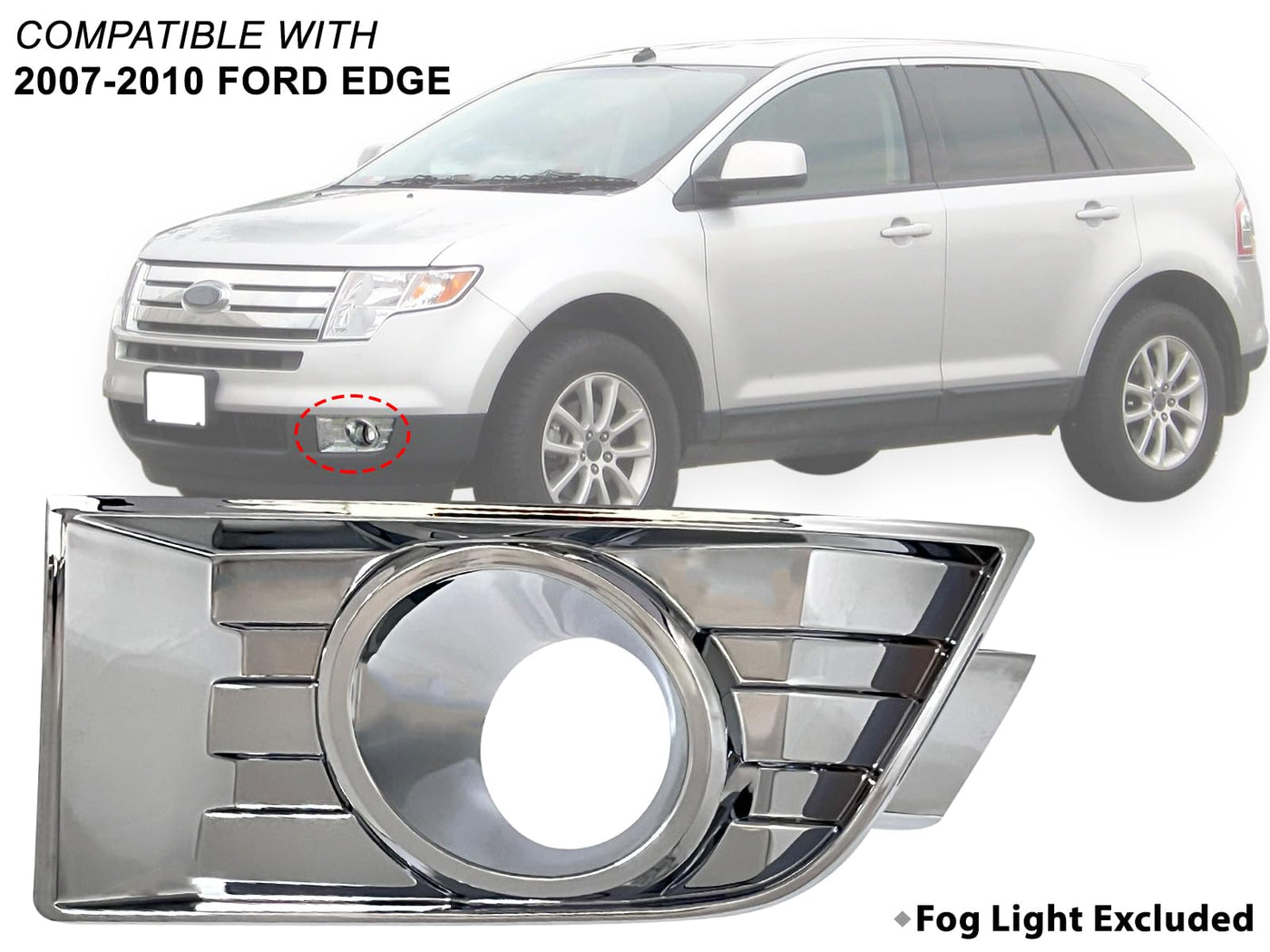 Item Description : Aftermarket Oem Replacement For Ford Edge Front Bumper Chrome Fog Lamp Bezel Driver Left Lh Side Does Not Fit Sport Models Features : Snap-On Without Installation Trouble , Chrome Smooth Surface This Is Bezel Only , Fog Light Is Not Included. Made In Taiwan (Dot) Department Of Transportation And (Sae) Society Of Automobile Engineers Approval Direct Replacement. Built To Strict Quality Control Standards. We Recommend That Installation Be Done By Professionals, As Item Will Not Come With Installation Instructions And We Do Not Provide Any Installation/Troubleshooting Assistance. Fits Oem Part Number : 7T4Z 17E811 B , 7T4Z17E811B Fits Partslink Number : Fo1038107 Fits Model And Year : 2008 2007 08 07 Ford Edge ( Models With Fog Lights Only) 2010 2009 10 09 Ford Edge Se / Sel / Limited Models ( Models With Fog Lights Only)