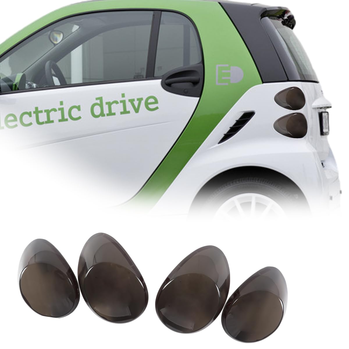 Smoked Black Rear Tail Light Lamp Cover Trim Compatible For Mercedes Benz Smart 451 Fortwo 2009 2010-2014 2015 Rear Tail Light Blackout Kit Molded Smoked Acrylic Cover, Smart Accessories (Smoked)