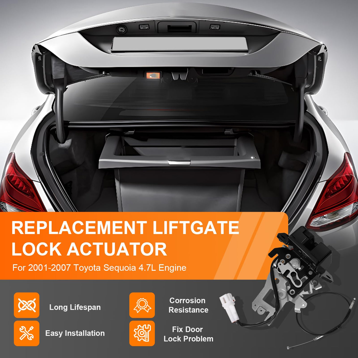 Yinlowa Liftgate Lock Actuator Trunk Latch for 2001-2007 Toyota Sequoia 4.7L - Rear Back Door Lock Assembly with Cable