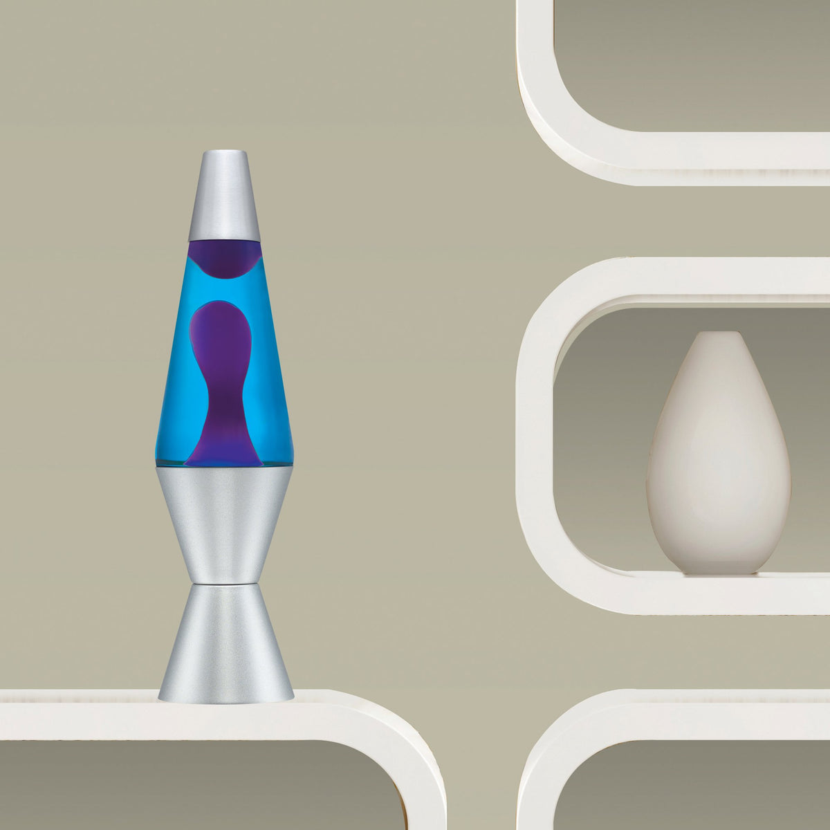 Q: How does the lava lamp work?A: The 14.5-Inch Silver Base Lava Lamp uses the principles of heat and density to create mesmerizing motion. When the included 25-watt bulb heats the wax, it melts and rises through the blue liquid, creating the iconic lava effect. As it cools, the wax sinks back down, repeating the cycle.