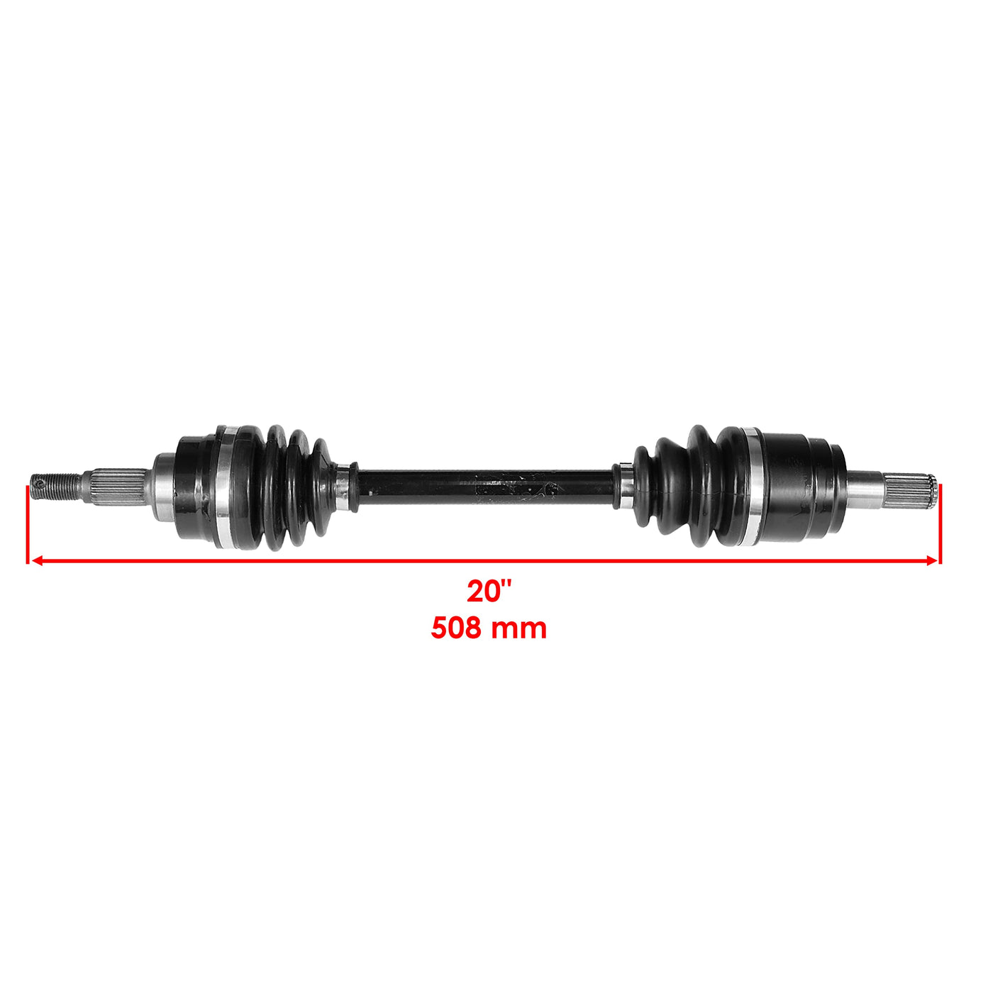 Q: What dimensions do the front axles have?A: The front right axle measures 20.5 inches (52 cm) in length, while the front left axle measures 20.25 inches (51.4 cm) in length.