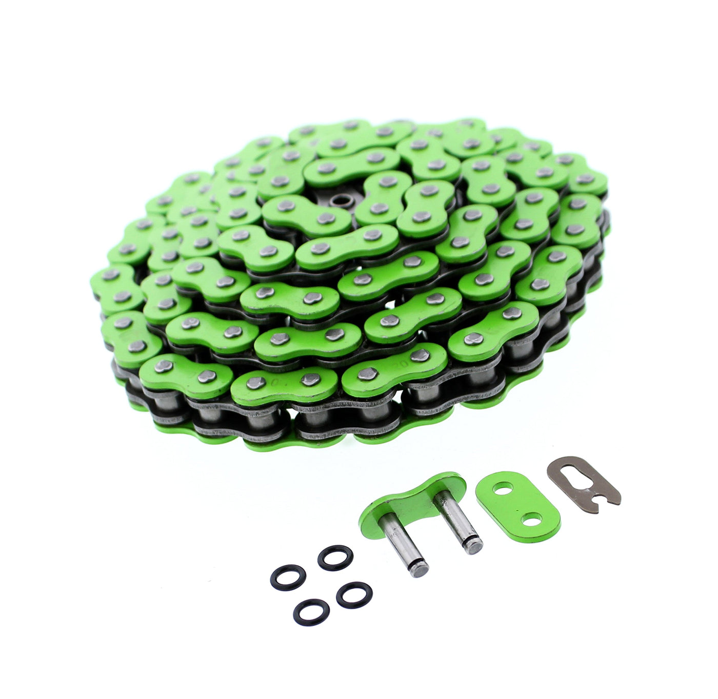 Q: What are the benefits of using an O-Ring chain for my Kawasaki KFX450R?A: An O-Ring chain, like the Race-Driven O-Ring Chain, offers several advantages including enhanced lubrication retention due to the rubber O-rings between each link. This design helps to reduce friction, prolongs the life of the chain, and minimizes the need for frequent maintenance, making it ideal for casual and recreational riders.