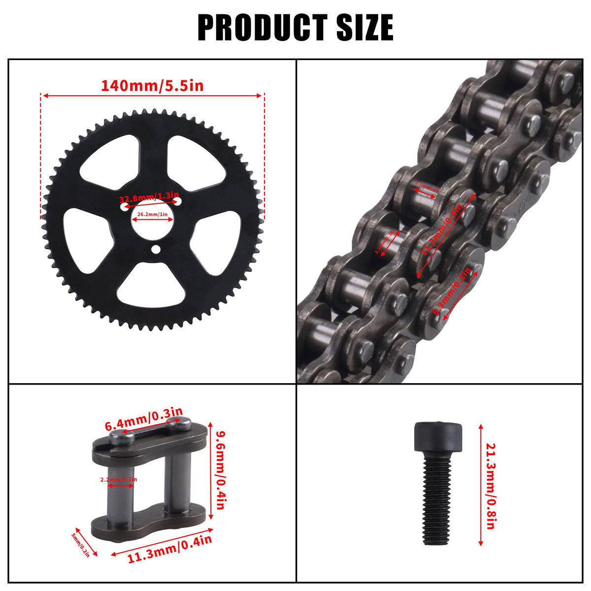 Cncmotok 25H 136Links Chain + 68T 68 Tooth Rear Sprocket,Fit For 49Cc Mini Small Sports Car Pocket Bike 2 Stroke Off-Road Motorcycle Chain Pinion Chain Drive Gear
