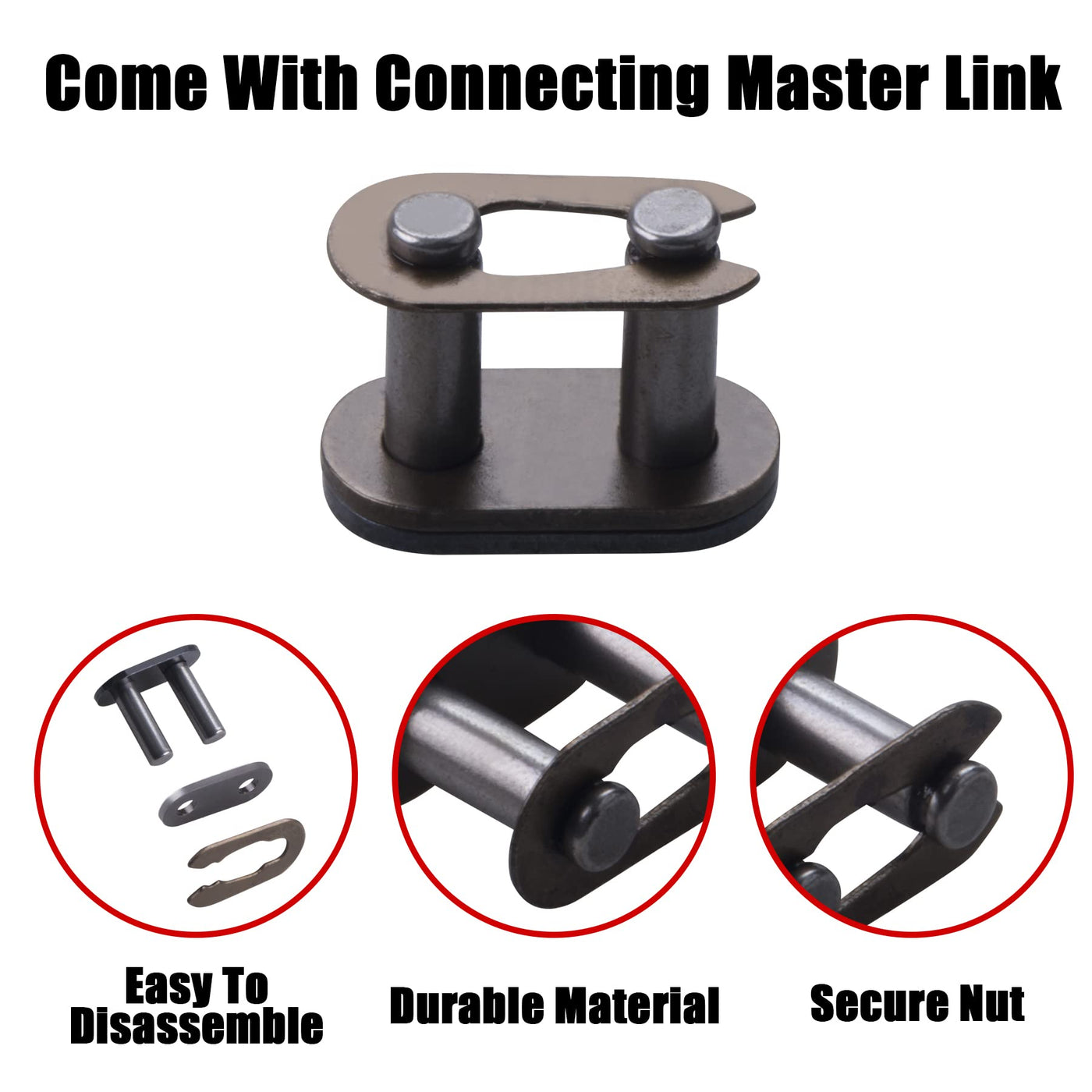 Cncmotok T8F Drive Chain 116 Links + Chain Breaker, Fit For 2 Stroke 43Cc 47Cc 49Cc Chopper Mini Bikes Coolster Pocket Bike Minimoto Parts 4 Wheeler Match: T8F Sprocket Chain 116 Links Fit For 2 Stroke 43Cc 47Cc 49Cc Chopper Mini Pocket Bikes Scooters Coolster Pocket Bike Minimoto Parts 4 Wheeler Atvs Quads Compatible With 49Cc Mini Chopper,Ssr Sx50,Uber Scooter ,Syxmoto Holeshot 50Cc ,Apc 43Cc Mini Chopper,49Cc Mini Chopper, Super Pocket Bike,Mototec Phantom Pocket Bike.(Not Fit 25H Sprocket) Premium Quality:Made Of High -Strength Alloy Steel, Which Is Very Wear -Resistant And Significantly Increases The Life Of The Sprocket. Please Check And Clean The Chain Regularly. Package Includes: 1 Xt8F-116L Chain,1 X Chain Breaker,4X T8F Master Links. Professional After-Sales:We Sell Professional Auto Parts ,And Provide Technical Support. If You Have Any Problems Or Dissatisfaction After Receiving The Products, We Will Solve The Problem As Soon As Possible.