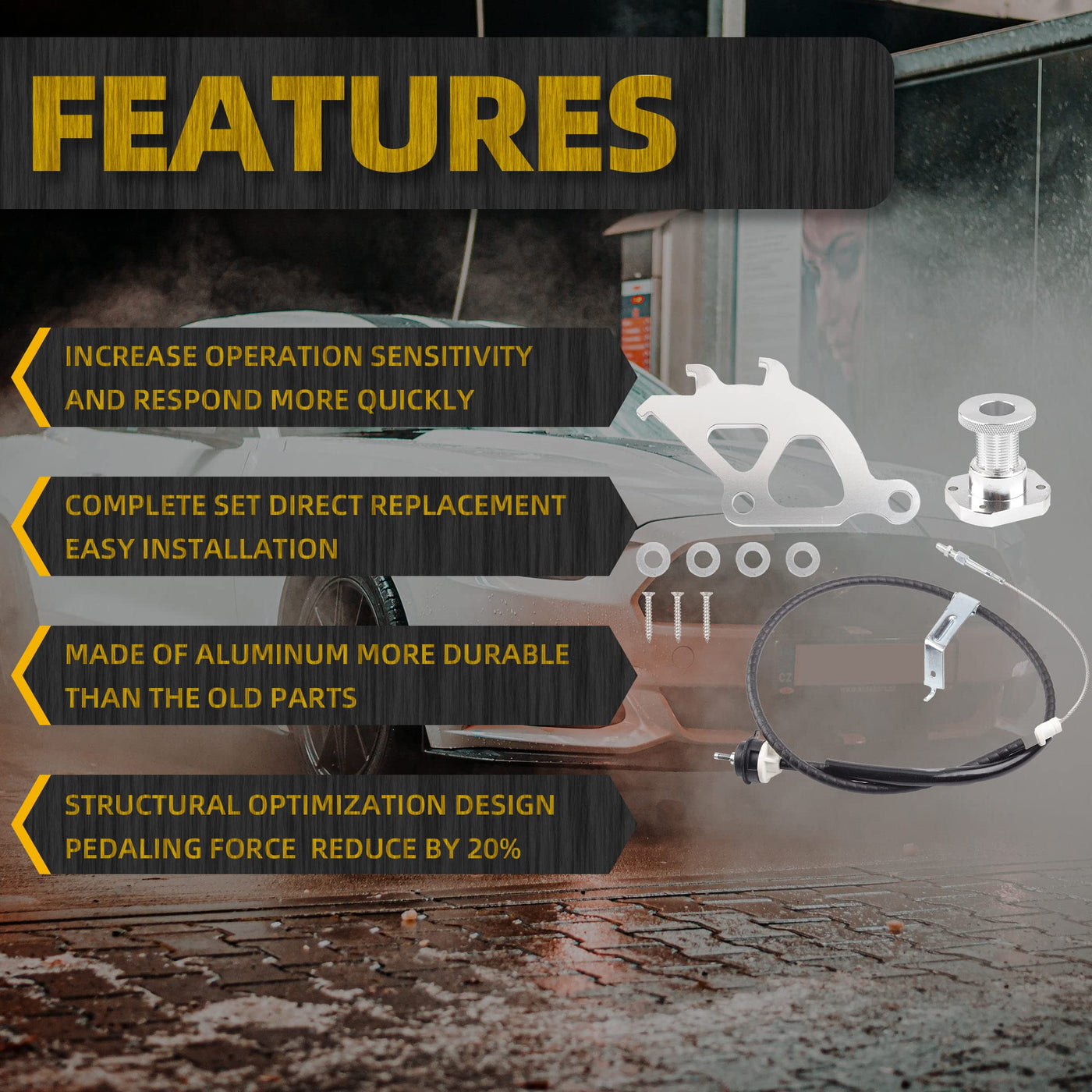 Q: How does the adjustable design of this clutch kit improve performance?A: The adjustable design of the Dasbecan Clutch Cable Kit allows for better customization, decreasing pedal effort by 20% and increasing operational sensitivity for a quicker response during clutch engagement.