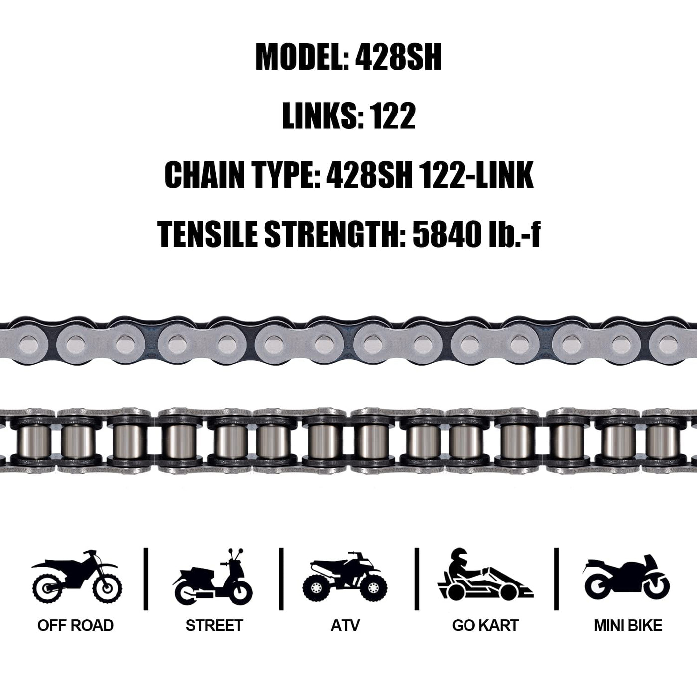 Dyc 428H Motorcycle Chain 122 Links With Chain Breaker, 428 Heavy Duty Chain For 125 150 200Cc Motorcycle Mini Bike Dirt Bike Go Kart Compatible With Ssr Taotao Coolster Apollo Baja Kazuma Chinese Atv