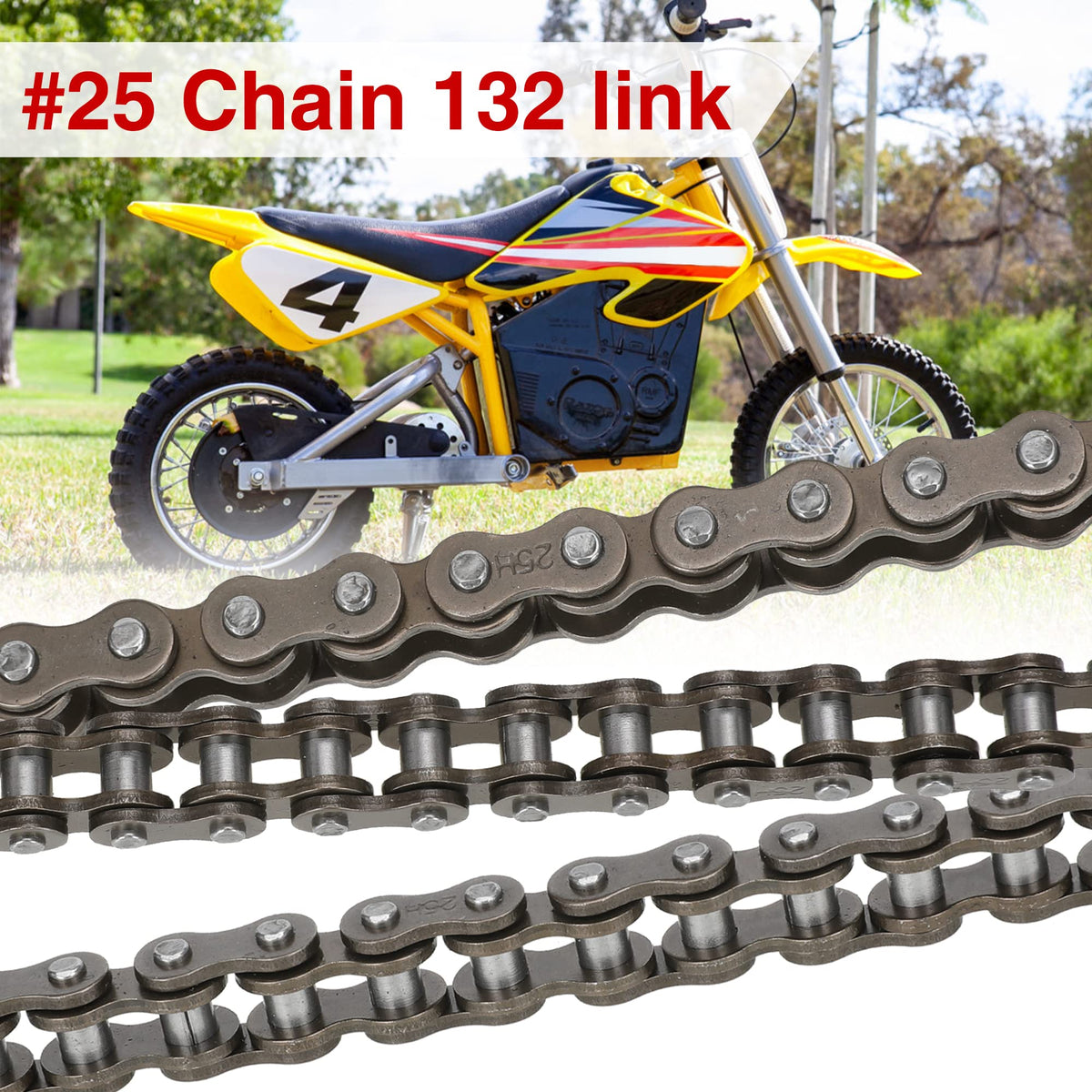 #25 Drive Chain 132 Link Fit For Razor Mx500 Mx650 Sx350 Sx500 Sx650 Dirt Rocket Dirt Quad Electric Motocross Bike Xrf50 Mini Moto Motorcycle Feature: 1.Long-Term Use Without Inspection And Adjustment Will Cause The Chain To Become Loose,So Need To Check And Replace Your Chain Regularly To Ensure Driving Safety. 2.We Have Complete Accessories In Each Package. Fitment: 1.Razor Mx500 Mx650 Sx350 Sx500 Sx650 Dirt Rocket. 2. Xrf50 Mini Moto Motorcycle Package Included: 1 X #25 Chain 132 Link 8 X Master Link —Please Check As Much As Possible To The Item Picture, Model And Size Carefully Before Purchasing.