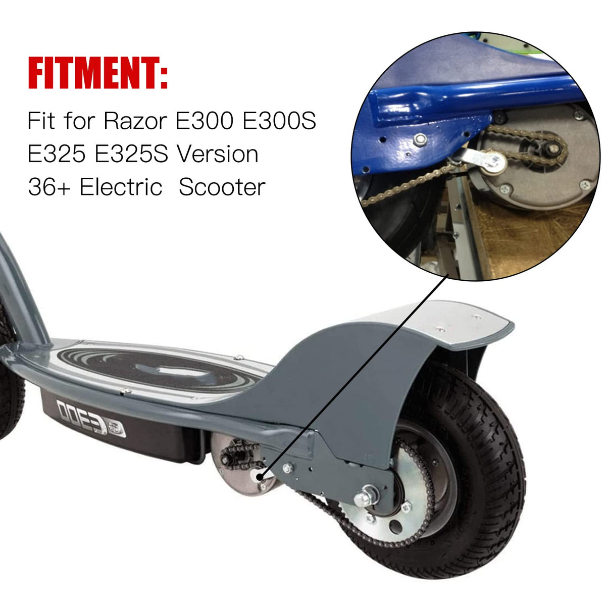 Chain Adjuster Tensioner With Roller Spring For Razor E300 Series E300S E325 E325S Version 36+ Electric Scooter Fit For Razor E300 E300S E325 E325S Version 36+ Electric Scooter,Compatible With Razor Part: W13113640079. Chain Tension Adjuster With Roller, Spring, And Mounting Hardware For Versions 36 And Up Of The Razor E300 And E300S Electric Scooter. E300 And E300S Scooters Prior To Version 36 Did Not Have An Automatic Chain Tensioner So This Part Replaces All E300 And E300S Scooters That Have Automatic Chain Tensioners. Feature: 1.Long-Term Use Without Inspection And Adjustment Will Cause The Chain To Become Loose,So Need To Check And Replace Your Chain Adjuster Regularly To Ensure Driving Safety. 2.Chain Adjuster Tensioner Easy To Adjust, Install And Disassemble.No Modification Is Required, Just Take Off Your Broken Or Old Tensioner And Install The New Replacement. 3.We Have Complete Accessories In Each Package. Fitment: Razor E300 , E300S(Version 36+) Electric Scooter Razor E325, E325S Electric Scooter Compatible With Razor Part: W13113640079 Not Compatible With The E200 Scooters Package Included: 1 X Chain Tensioner 1 X Spring 1 X Screw 1 X Nut —Please Check As Much As Possible To The Item Picture, Model And Size Carefully Before Purchasing.