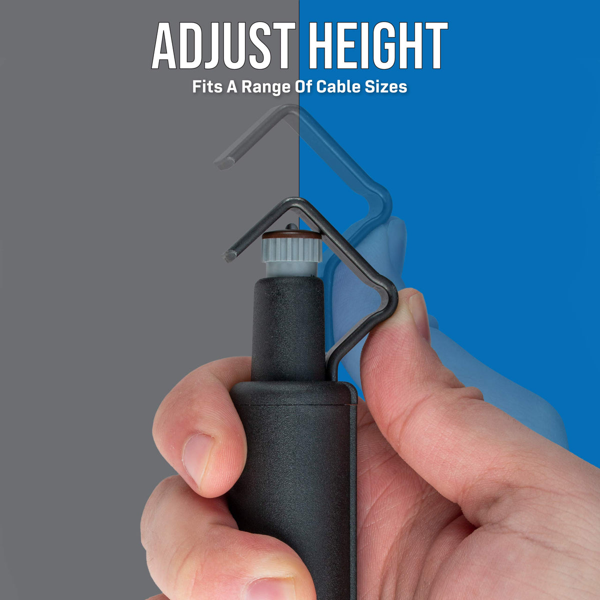 Q: How does the adjustable blade feature work on the Jonard CST-1900?A: The CST-1900 features an adjustable blade depth that can be set from 0 to 3 mm, allowing users to customize the cutting depth based on the specific cable size and insulation thickness they are working with.
