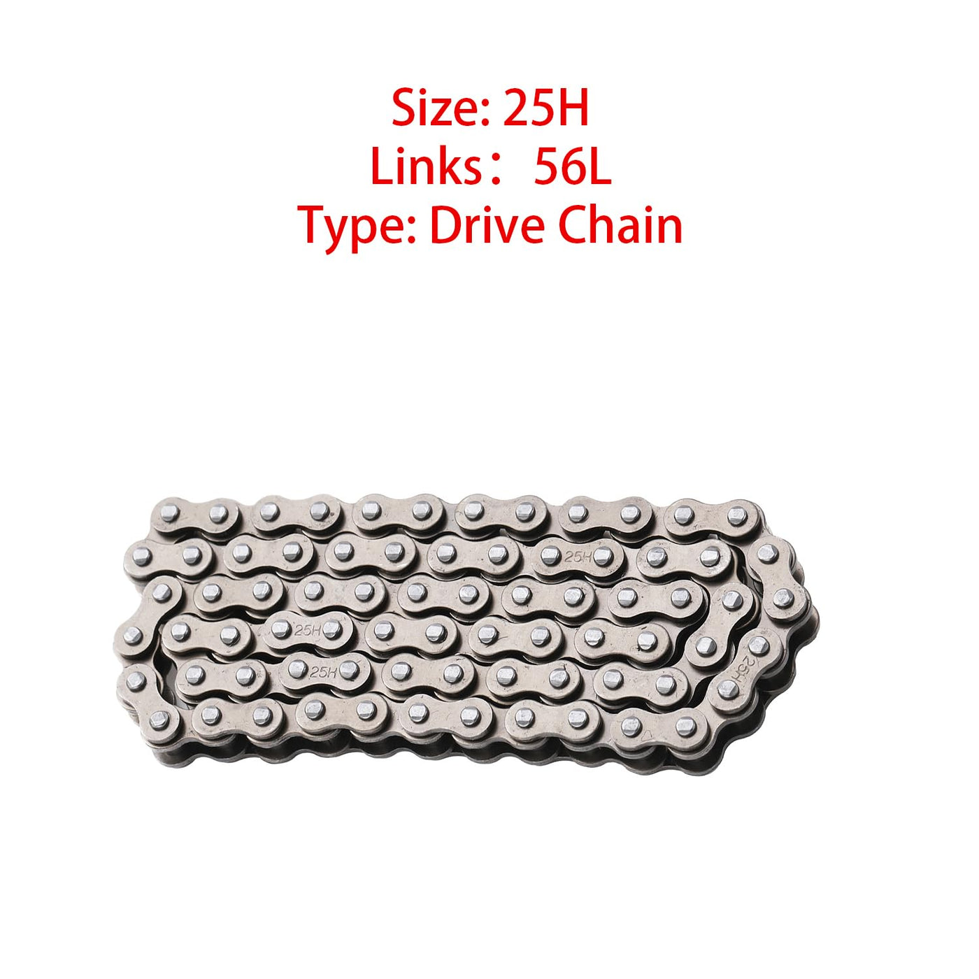 Q: How many links does the KAMIER #25 Roller Chain have?A: The KAMIER #25 Roller Chain features 56 links, providing the necessary length for various electric go-kart applications.