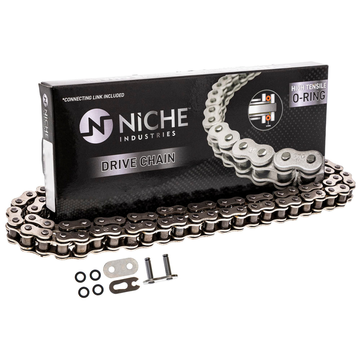 Q: Can I use the NICHE 428 Drive Chain in wet or muddy conditions?A: Yes, the NICHE 428 Drive Chain is engineered to perform reliably in various environments, including wet, muddy, or dusty conditions. Its NBR O-Rings enhance durability and performance in challenging terrains.