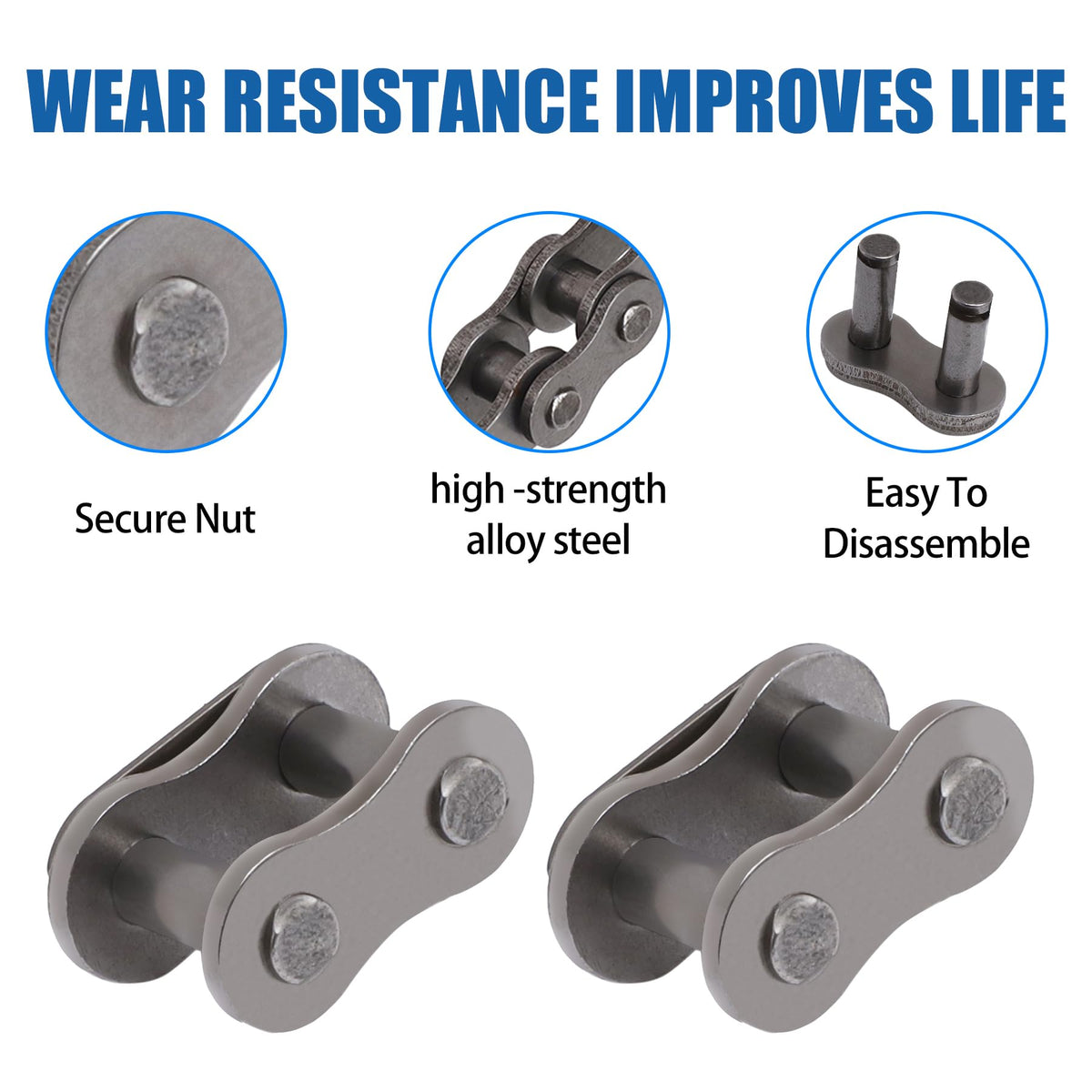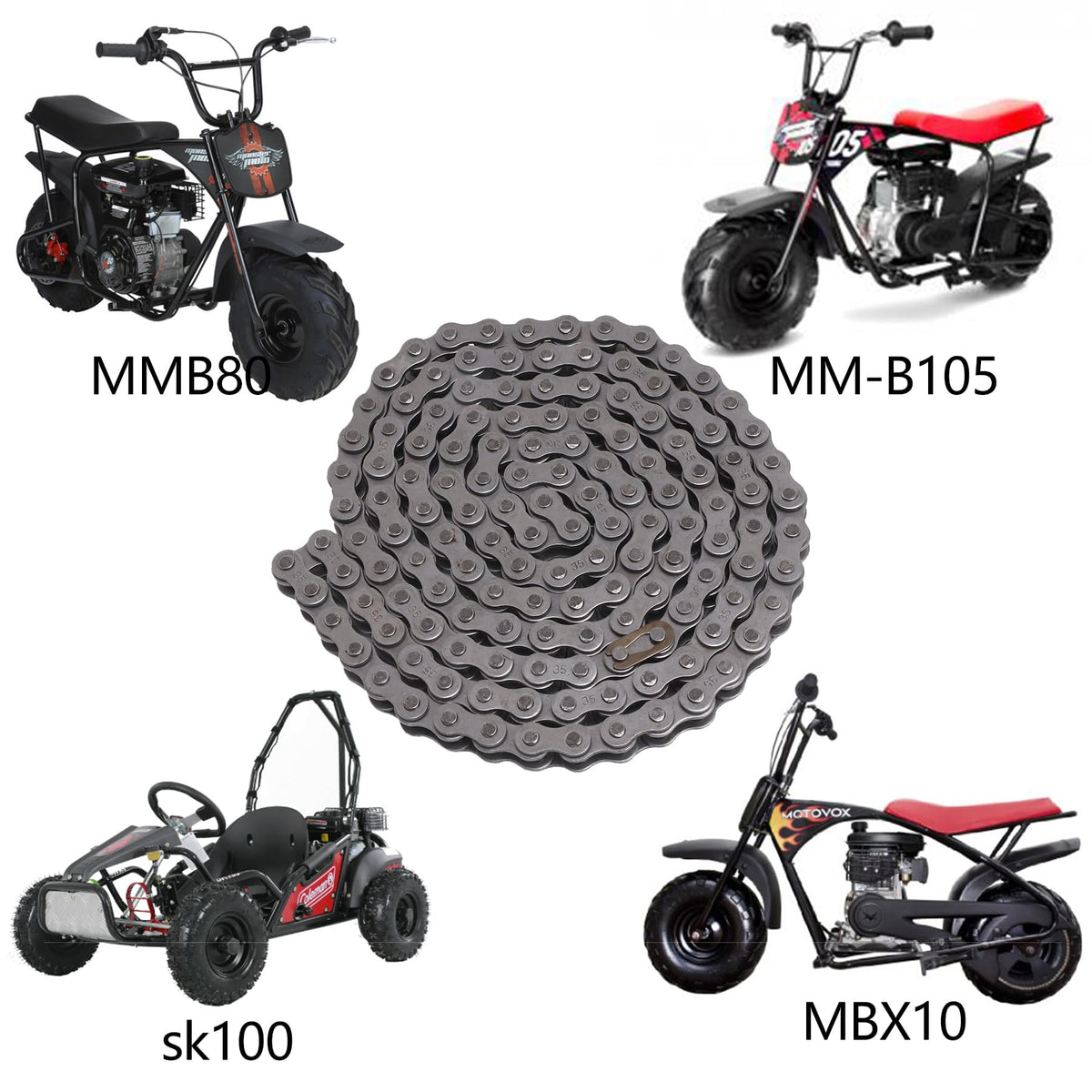 Q: How long is the PLAXNS Roller Chain?A: The PLAXNS Roller Chain comes with 140 links, providing ample length for compatibility with different setups, ensuring a reliable fit for your go-kart or mini bike.
