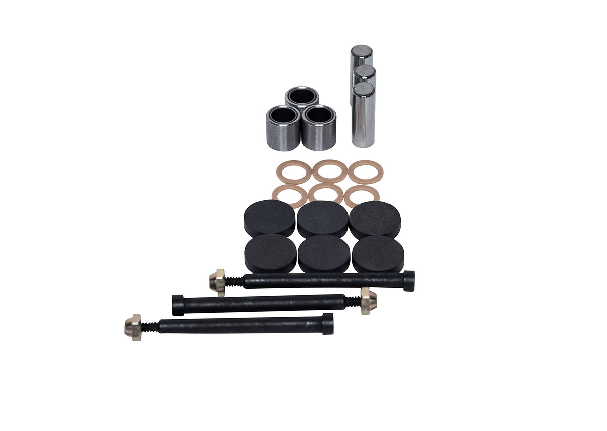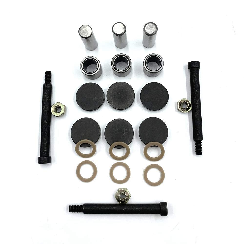 Q: What parts are included in the clutch rebuild kit?A: The kit contains 6 black buttons, 6 washers, 3 pin rollers, 3 roller bushings, 3 rods, and 3 nuts, ensuring you have all the necessary components for a complete rebuild.