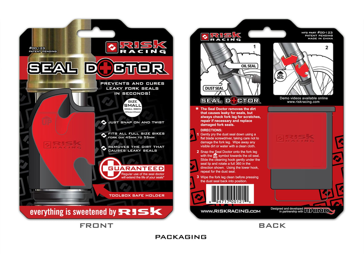 Most Dirt Bike Riders Are Faced By Leaky Fork Seals Several Times A Year. Riders Are Then Challenged To Repair A Complicated And Sensitive Suspension System Which Requires Specialty Tools. The Alternative Is To Pay For An Expensive Repair Bill And Take Time Off The Bike While It Is In The Shop. Additionally, It Can Ruin A Race Day Or An Epic Trail Ride. However, Having The Ability To Quickly And Easily Repair A Leaky Fork Seal At The Track Or On The Trail Can Save Repair Costs, Race Entry Fees, Salvage Valuable Title Points Or Reclaim That Weekend Trail Ride! The Majority Of Fork Seals Leak Due To Dirt Being Trapped In The Seal. Obviously This Leak Will Affect The Suspension Tuning Of Your Bike. It Can Also Soak Your Front Brake Pads Creating Unsafe Riding Conditions. This Common Problem Is Exactly Why The Seal Doctor Was Designed. Just Snap The Seal Doctor On Your Fork Tube, Insert It Into The Leaky Seal And Twist. The Design Of The Seal Doctor Maintains The Proper Position And Angle As You Rotate Around Your Fork Tube. It Effortlessly Pulls The Dirt Out Of The Fork Rather Than Pushing It Deeper Into The Fork. The Seal Doctor Also Comes With A Protective Holder So That It Can Be Stored Safely In Your Toolbox Or Trail Pack Ensuring You Always Have The Appropriate Tool For The Job.Risk Racing Is Based In Mooresville, Nc Usa, And We Are Here For You! We Design Products From The Ground Up And Take Great Pride In What We Create. Making Sure Every Customer Is Happy With Their Risk Product Purchase Is A Priority. Whether It’S Questions Or Concerns, We Are Here With Answers. Our Customer Service Team Offers Personal Service And Strives To Insure Every Customer Is 100% Satisfied With Our Product. Due To Our Unique Innovation, We Are Targets Of Copy Products. Please Beware Of Imitations.