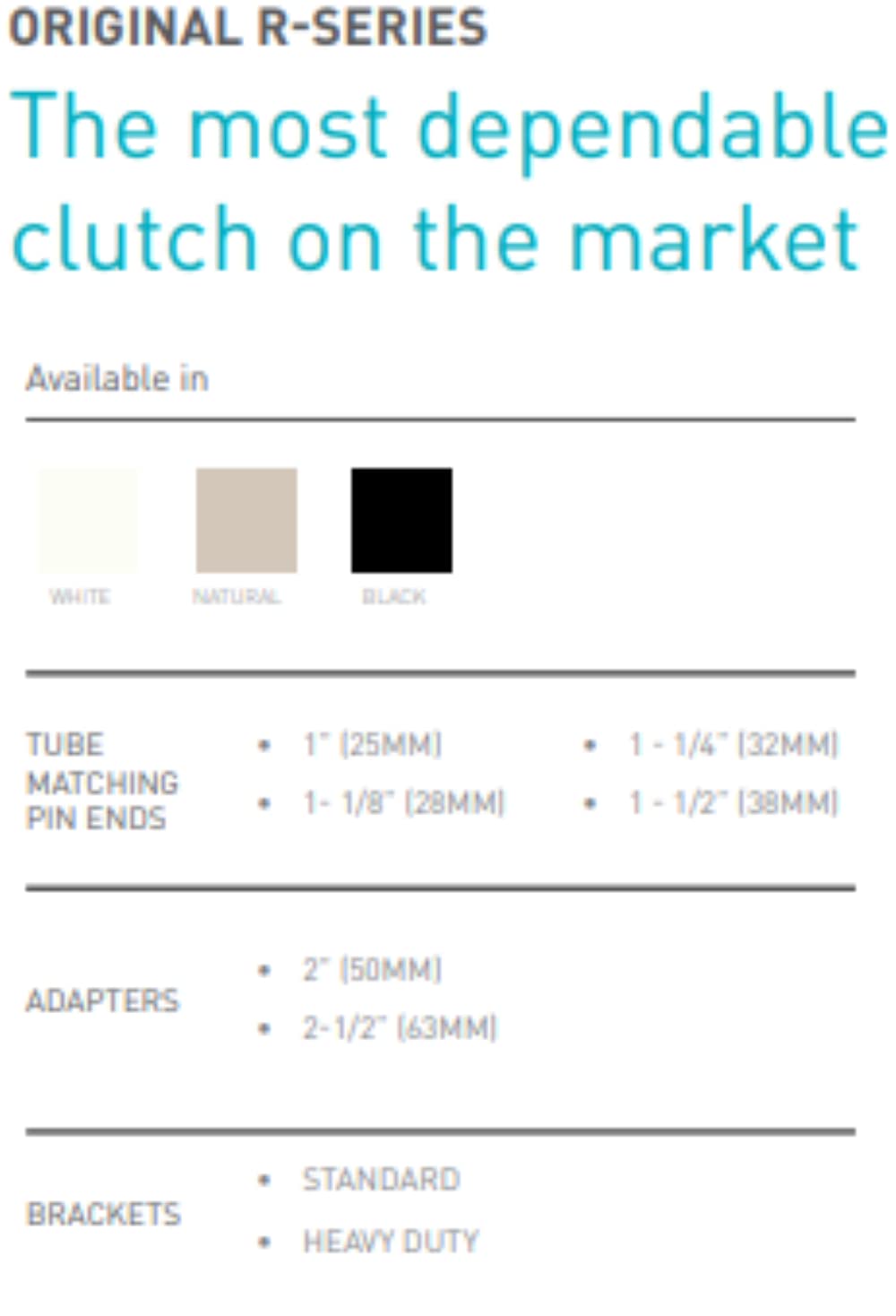 Rollease - R3 Roller Shade Clutch For 1 1/8'' Tube - White For More Than 30 Years, R-Series Clutches Have Been The Market Leader When It Comes To Reliability, Dependability And Strength. Rollease Acmeda Pioneered The R-Series Clutch In 1982 And No One Has Been Able To Beat It Since. The R-Series Clutch Is Ideal For Handling Commercial Applications Or Large Weights And Lives Up To Heavy Usage Time And Time Again. Our Proprietary Spring Mechanism Creates An Easy Pull For A Smooth, Uninterrupted Lifting Of Window Coverings. The R-Series Distinctive Design Was Worthy Of A Registered Trademark. The Internal Spring Arrangement Distributes The Interior Forces Evenly Over The Inner Core To Offer A Smooth And Durable Pull. The Ratio Between The Bead Chain Pulley And The Shade Tube Creates A Mechanical Advantage That Allows The Pull Forces To Raise A Shade To Be Less Than The Actual Weight Of The Shade. The R-Series Clutch Comes In Brown, Black, And White. Refer To The Picture Chart For Sizes.