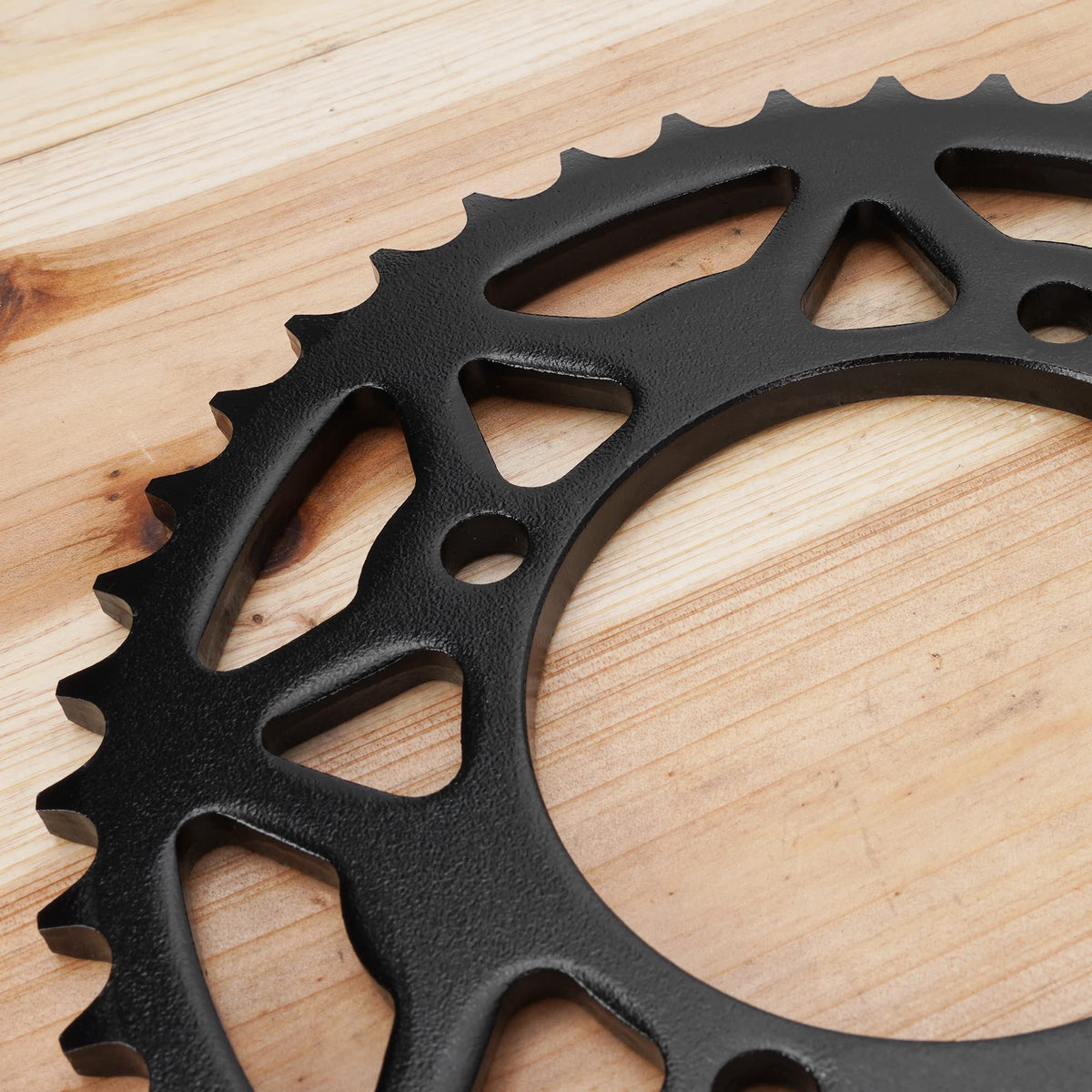 Q: How does the tooth count affect the performance of the sprocket?A: The tooth count on the sprocket significantly impacts performance; a higher number of teeth provides stronger power, while a lower number allows for faster speeds, enabling riders to choose based on their riding style and needs.
