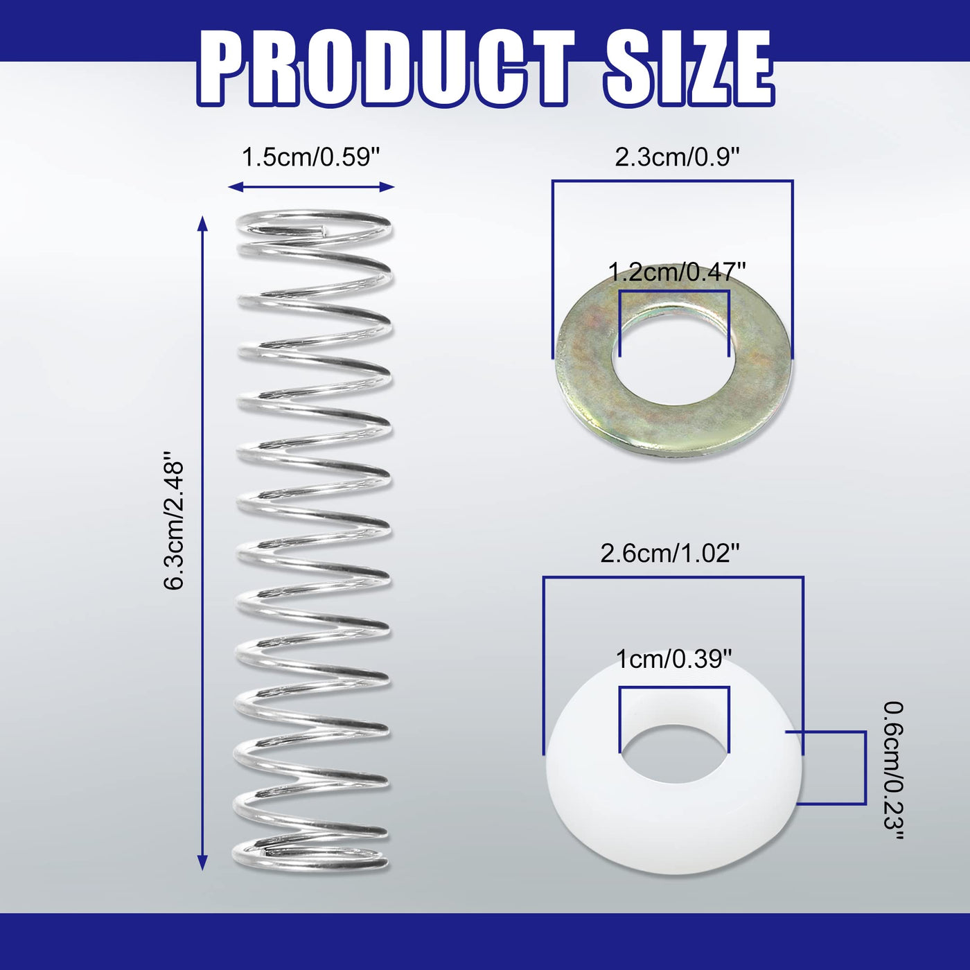 Specification: Condition:New Type:Shaft Linkage Bushing Spring Kit Place On Vehicle:Front Color:White, Silver Tone Linkage Spring Dimension:1.5X6.3Cm/0.59''X2.48''(W*H) Bushing Dimension:2.6X0.6Cm/1.02''X0.23''(W*H) Bushing Inner Diameter:1Cm/0.39'' Gasket Inner Diameter:1.2Cm/0.47'' Gasket Outer Diameter:2.3Cm/0.9'' Material: Plastic,Metal Fitment Type:Direct Replacement Replace Part Number: Bushing:1377083 Spring:10236109, 15538092, 1380549 Pin Clip:12338114, 10040797
