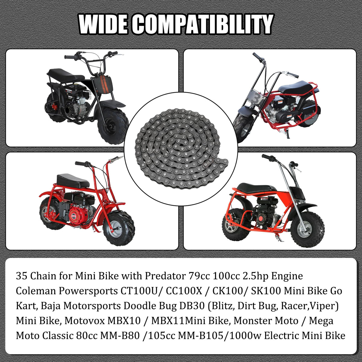 35 Roller Chain 140 Link Fit For Coleman Baja Motovox Monste* Mega Moto Mini Bike With Predator 79Cc 97Cc 98Cc 100Cc Engine. Coleman Powersports Ct100U/ Cc100X Mini Bike , Baja Motorsports Doodle Bug Db30 (Blitz, Dirt Bug, Racer,Viper) Mini Bike, Motovox Mbx10 / Mbx11 Mini Bike, Monster Moto / Mega Moto Classic 80Cc Mm-B80 /105Cc Mm-B105/1000W Electric Mini Bike