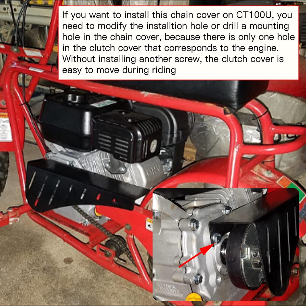 Features: Work With Predator 212Cc 196Cc Tilotson 212R, Hond* Clone, Tecumseh And Brigg* & Stratton Engines Mini Bike. Compatibility: Coleman Ct200U/ Ct200U-Ex Bt200X , Baja Motorsports Mini Bike Mb165 & Mb200 (Heat, Mini Baja, Warrior), Massimo Mb200, Trailmaster Mb200, Coleman Ct100U, Baja Doodle Db30, Monster Moto Mm-B80/Mm-B105, Motovox Mbx10, Note-If You Want To Install This Chain Cover On Predator 212Cc 196Cc Coleman, Baja Massimo,Trailmaster, You Must Remove The Jackshaft Assembly. If You Want To Install This Chain Cover On Ct100U, You Need To Modify The Installtion Hole Or Drill A Mounting Hole In The Chain Cover A Necessary Part For Leg And Clutch Assembly Protection. Made From High-Quality Materials For Durability. Note- If Your Bike Frame Is Close To Clutch Assembly,Such As Monster Moto 80/105Cc, You Have To Do A Little Cutting On This Chain Guard To Get It To Fit Your Bike. ? Specification: Part Name : Mini Bike Chain Guard Brand: Yoxufa