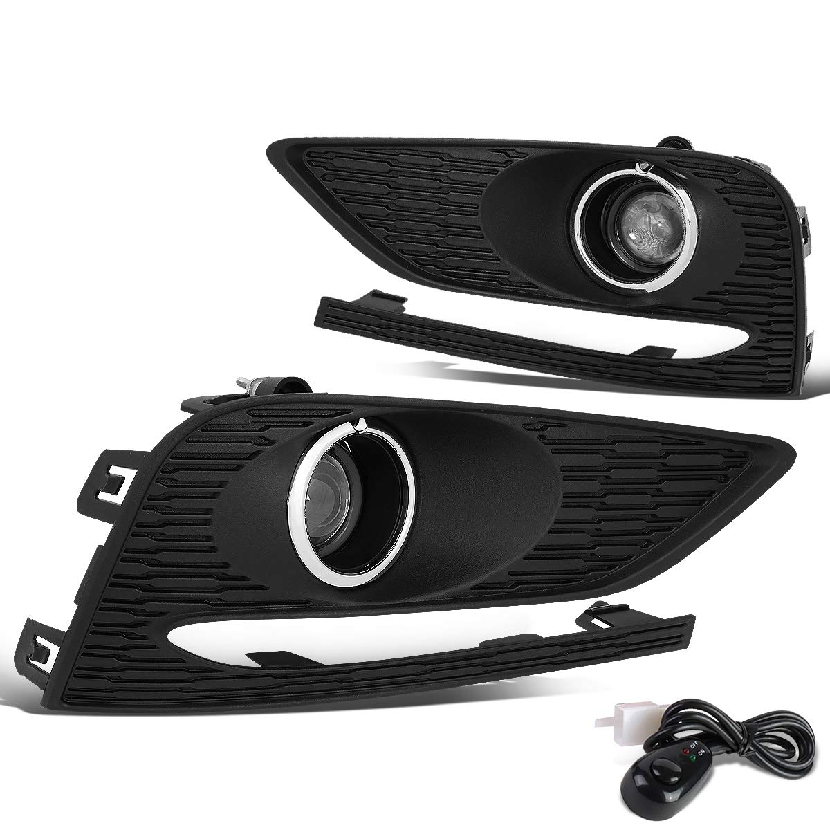 Auto Dynasty Pair Projector Front Driving Fog Light/Lamps w/Bezel Cover+Switch Compatible with 16-18 Chevy Cruze