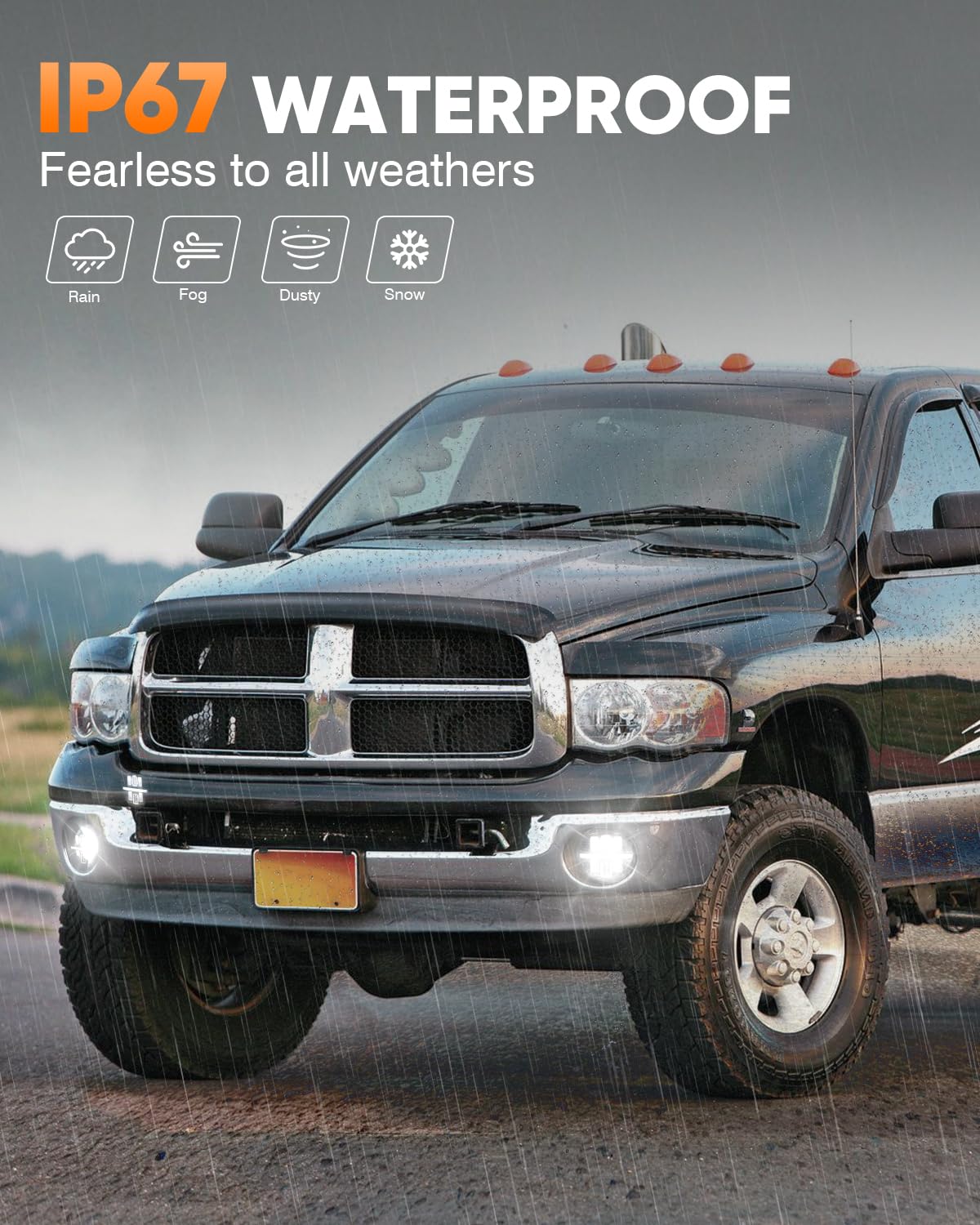 Q: Is the BICYACO LED Fog Light waterproof?A: Yes, the BICYACO LED Fog Light has an IP67 waterproof rating, ensuring durability and functionality even in harsh weather conditions, making it a reliable choice for all driving situations.