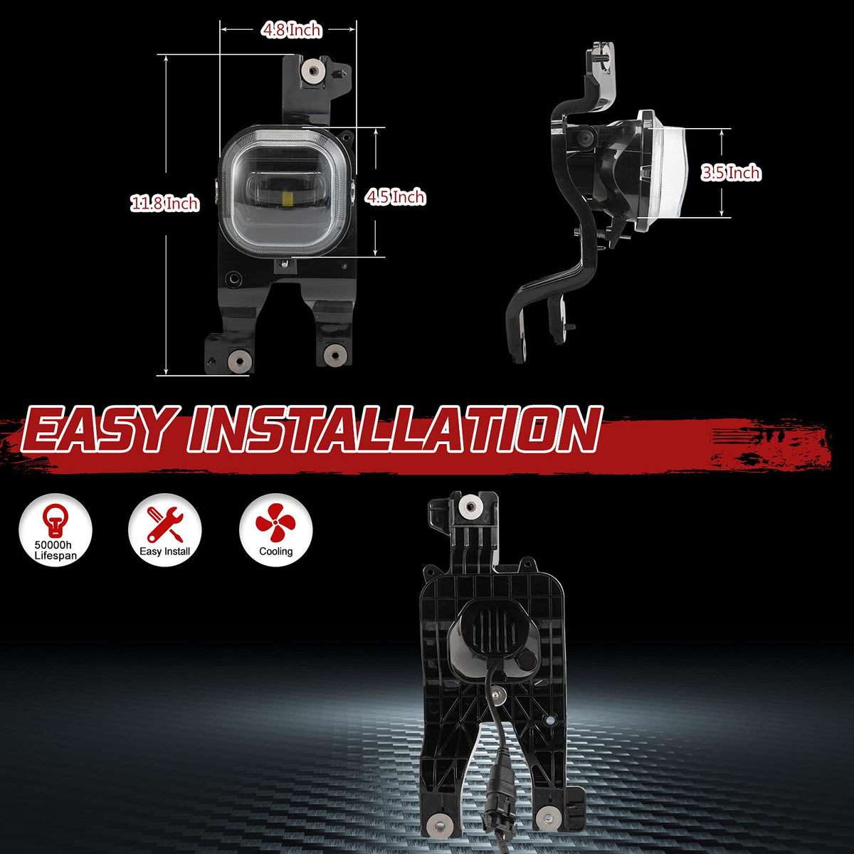 Q: Is installation of the BUNKER LED Fog Lights complicated?A: No, installation is quick and easy. These fog lights feature a plug-and-play design with bolt-on installation, making it a hassle-free process. The included connector ensures that no modification is needed for setup.