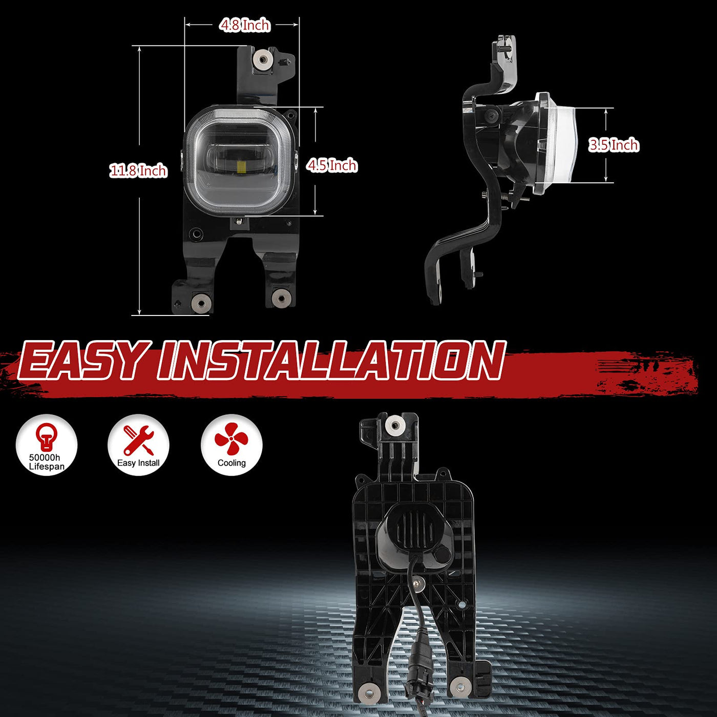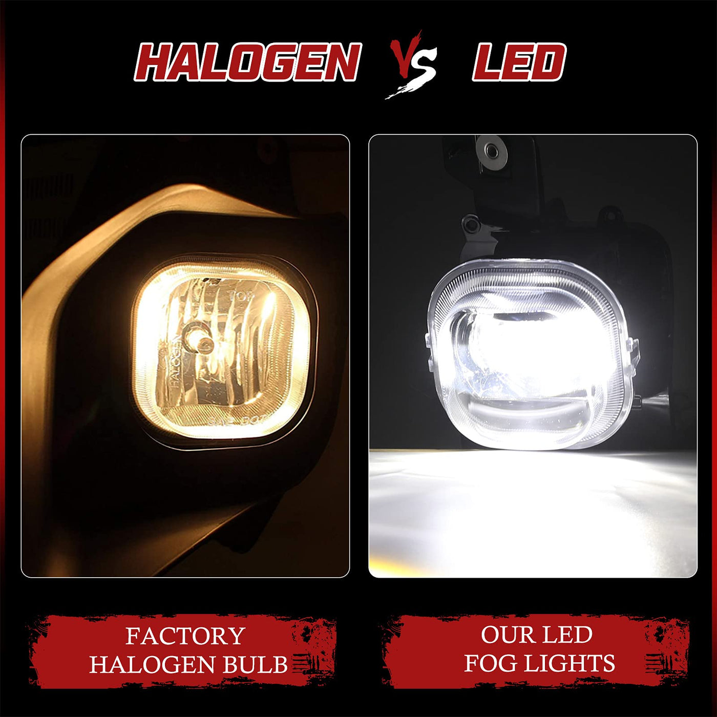 Q: How bright are the BUNKER LED Fog Lights compared to stock halogen lights?A: These upgraded fog lights provide a brightness of 5,500K, which is significantly brighter than stock halogen lights. This enhanced brightness offers a wider and longer illumination distance for safer driving.