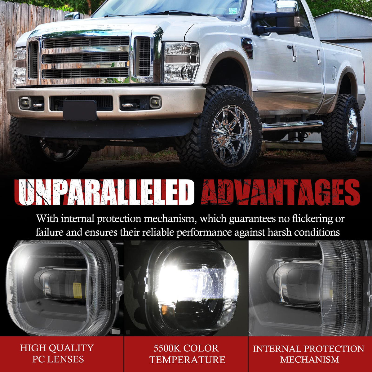 BUNKER INDUST LED Fog Lights Kit for 2008-2010 Ford F250/F350/F450 Super Duty with Adapter Extension Harness, Bumper Driving Lamp