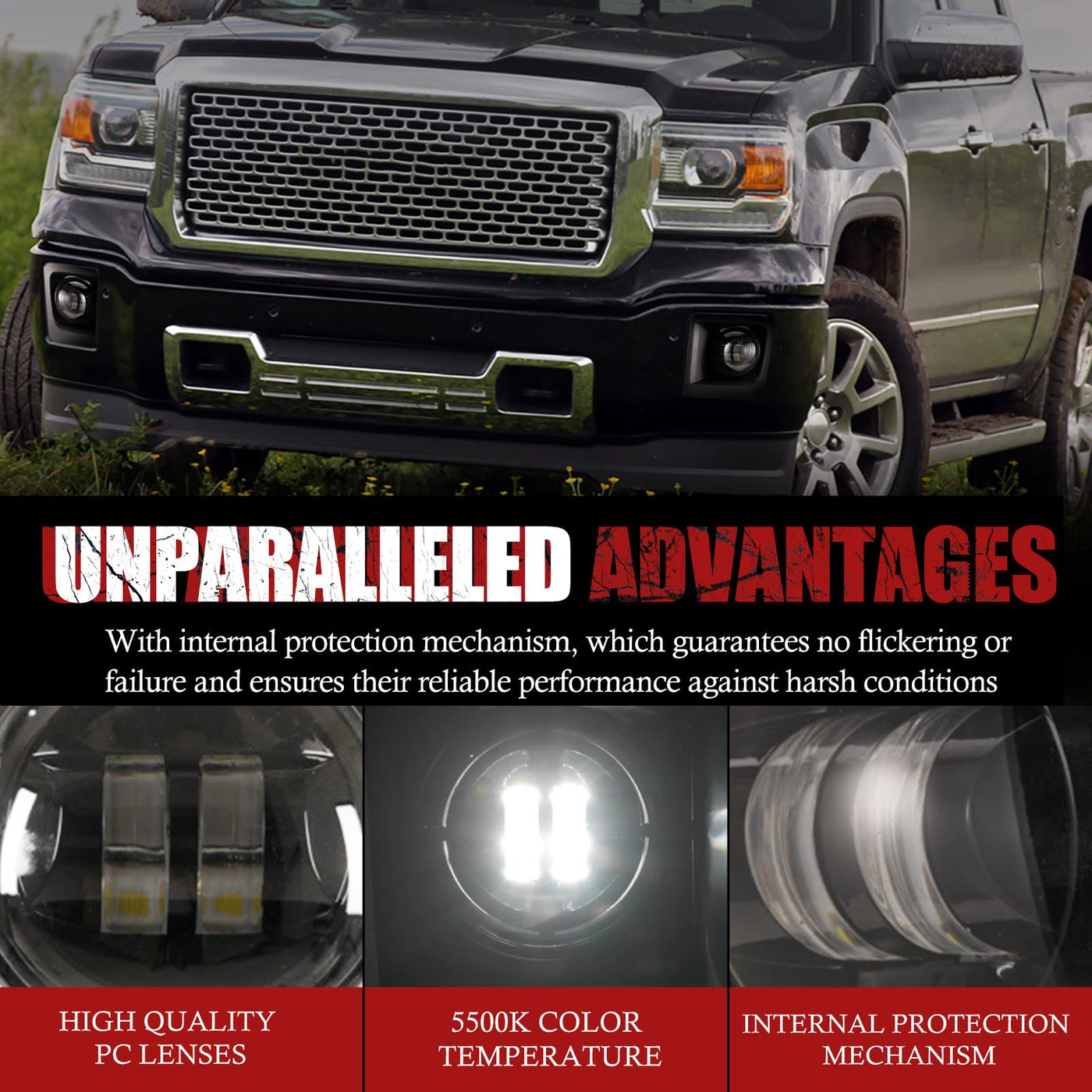 Superior Design: Fully sealed with an IP68 waterproof rating, these fog lights are rustproof and shock-proof, making them ideal for use in various weather conditions, including deserts, smog, and rain. Built-in upgraded heat sinks maximize surface area, keeping temperatures low while enhancing brightness.