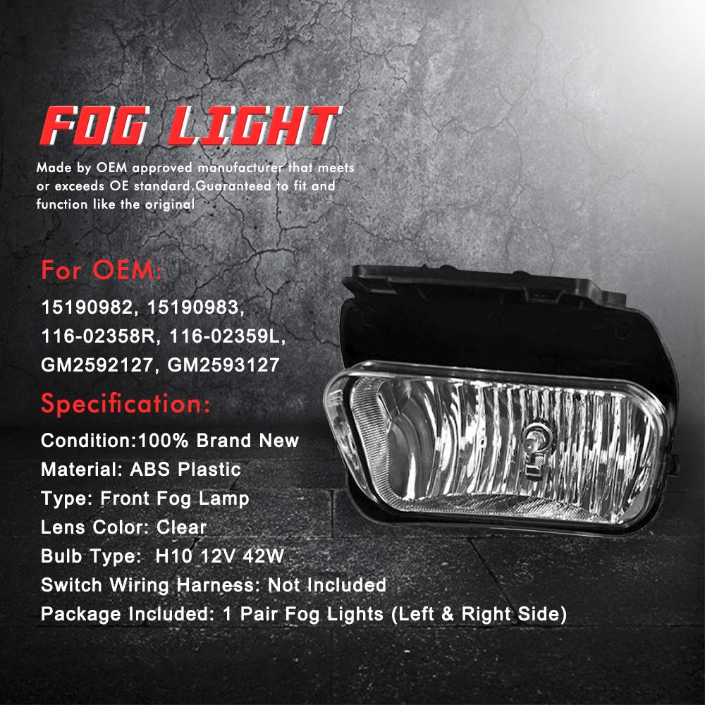 Driving Fog Lights Lamps Replacement For Chevy Silverado 2003 2004 2005 2006 2007 All Models Avalanche 2002-2006 Without Body Cladding H10 12V 42W Halogen Bulbs (Clear Lens)