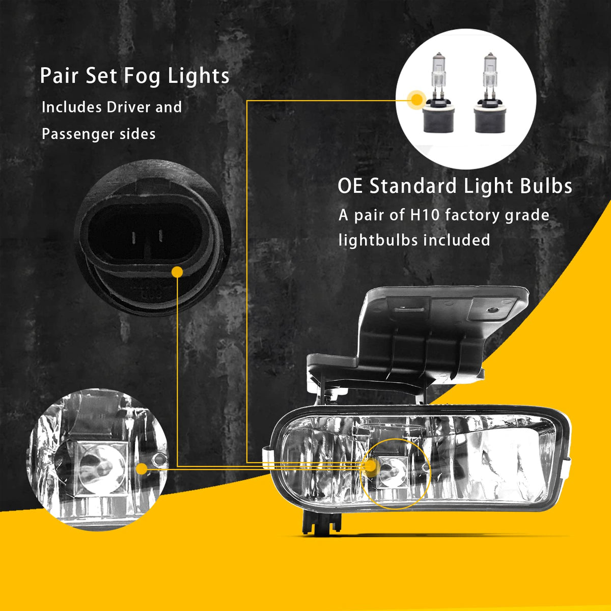 Fog Lights Compatible with 1999-2002 Chevy Silverado 1500 2500/2001 2002 Silverado 1500HD 2500HD 3500/2000-2006 Tahoe Suburban 1