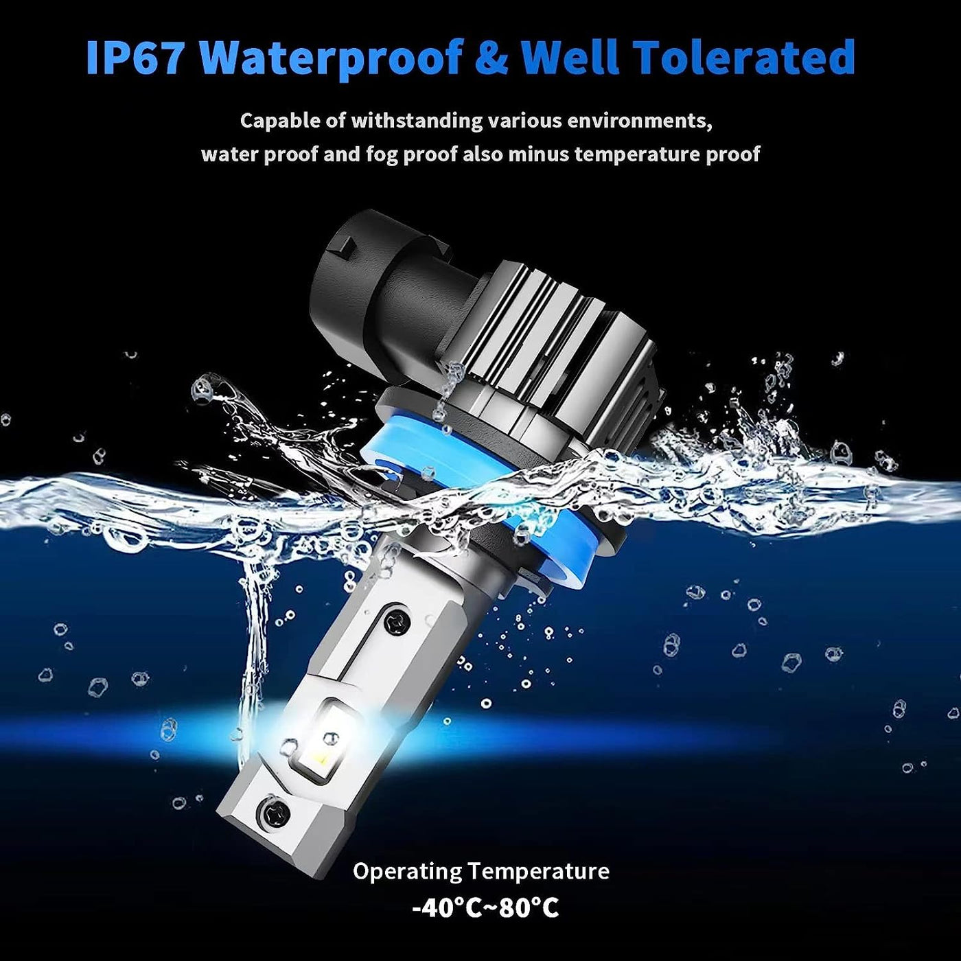 Q: What is the waterproof rating of the RCJ H11 bulbs?A: The RCJ H11 bulbs have an IP67 waterproof rating, meaning they have been rigorously tested for durability and can withstand severe weather conditions such as heavy rain, fog, and snow.